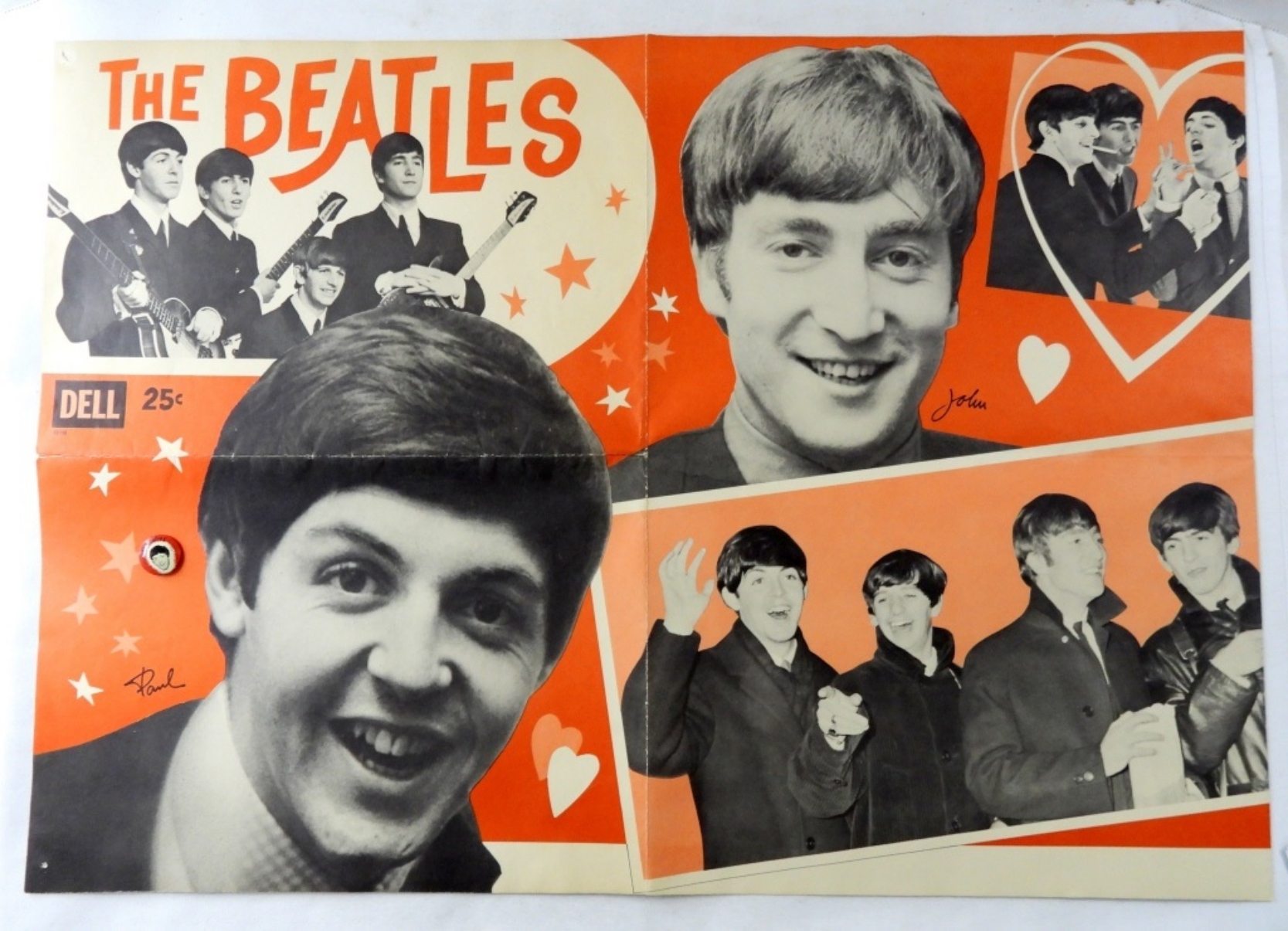DELL THE BEATLES POSTER & PAUL MCCARTNEY RED PIN.