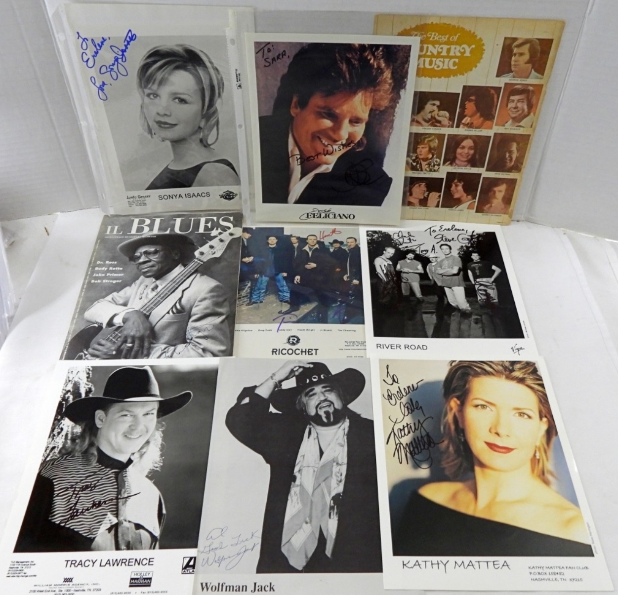 ROBERT “BOB” STROGER AUTOGRAPHED IL BLUES MAGAZINE 1996. RICOCHET, JOSE FELICIANO, SONYA ISAACS, AMY SKY, RIVER ROAD, KATHY MATTEA, WOLFMAN JACK, TRACY LAWRENCE & GEORGE JONES ON THE BACK OF A “THE BEST COUNTRY