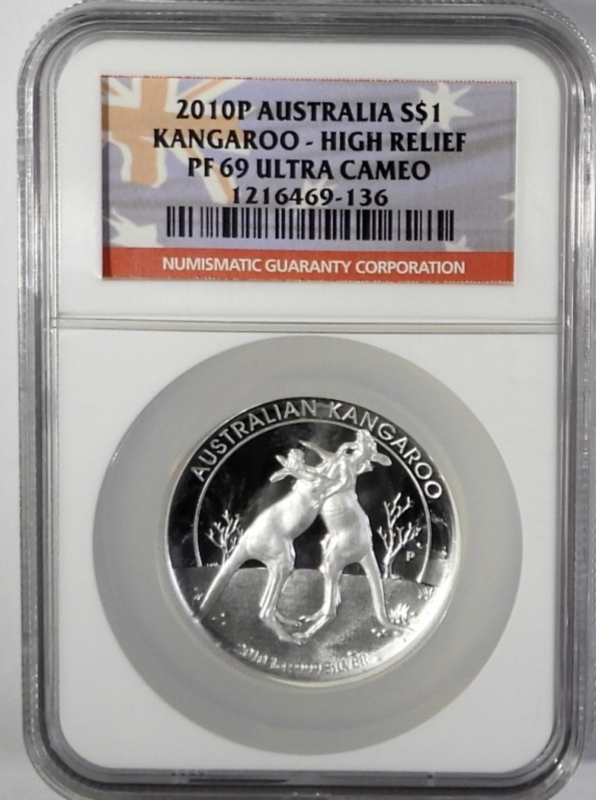 NGC 2010 AUSTRALIA S$1 KANGAROO-HIGH RELIEF PF69 ULTRA CAMEO 1OZ.999