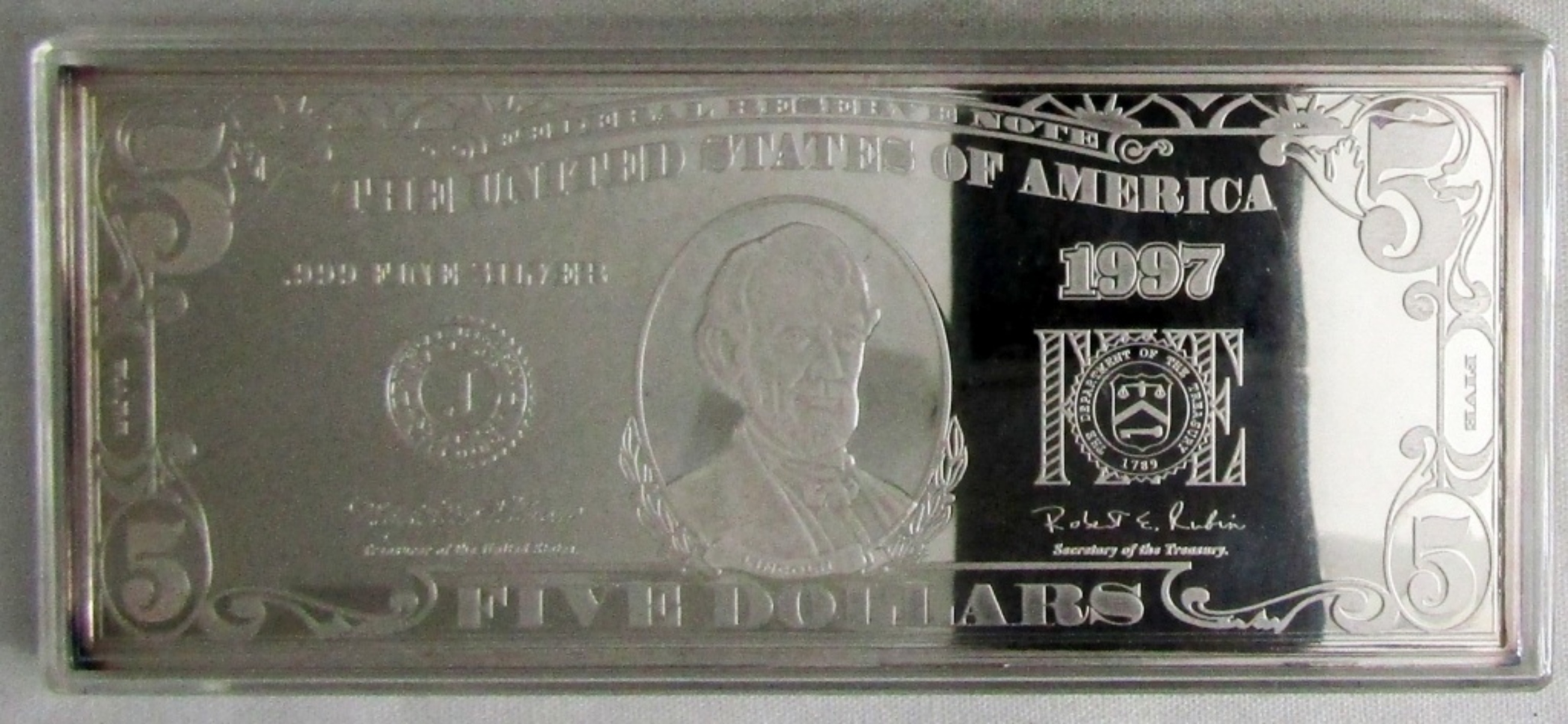 1997 .999 $5 DOLLAR 4 OZ SILVER BAR