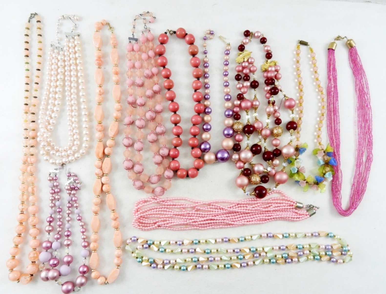 ASSORTED 12 PINK TONE NECKLACE MIXED GRAB BAG