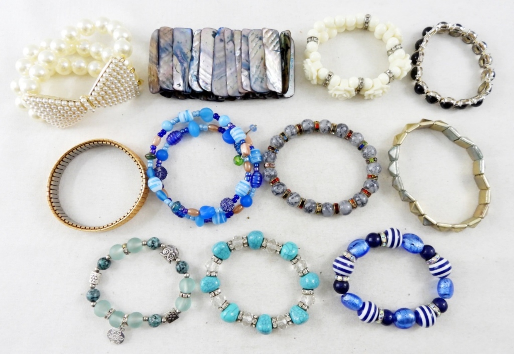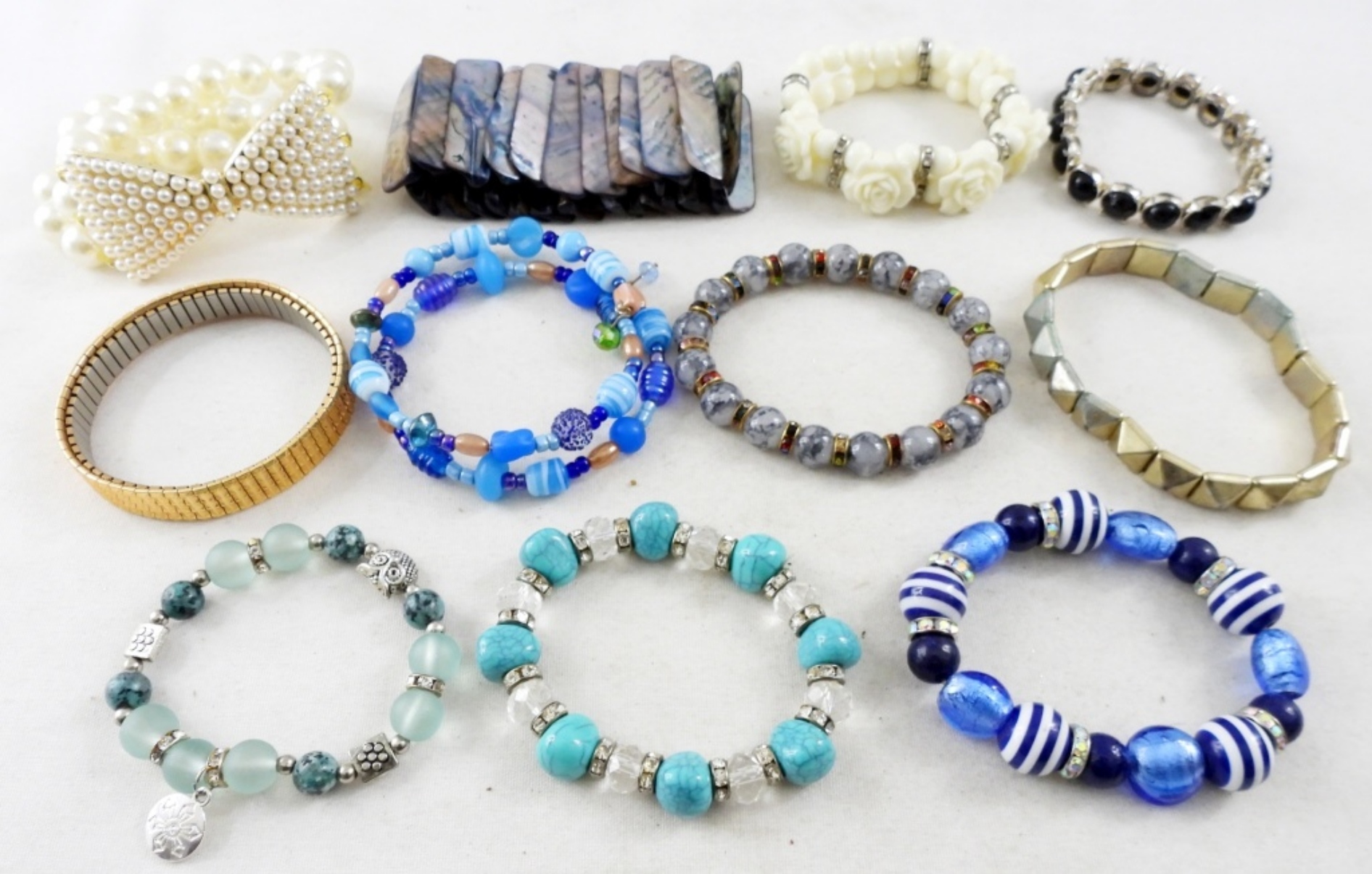 11 ASSORTED COLORS AND STYLES OF LADIES FASHION STRETCHY BRACELETS