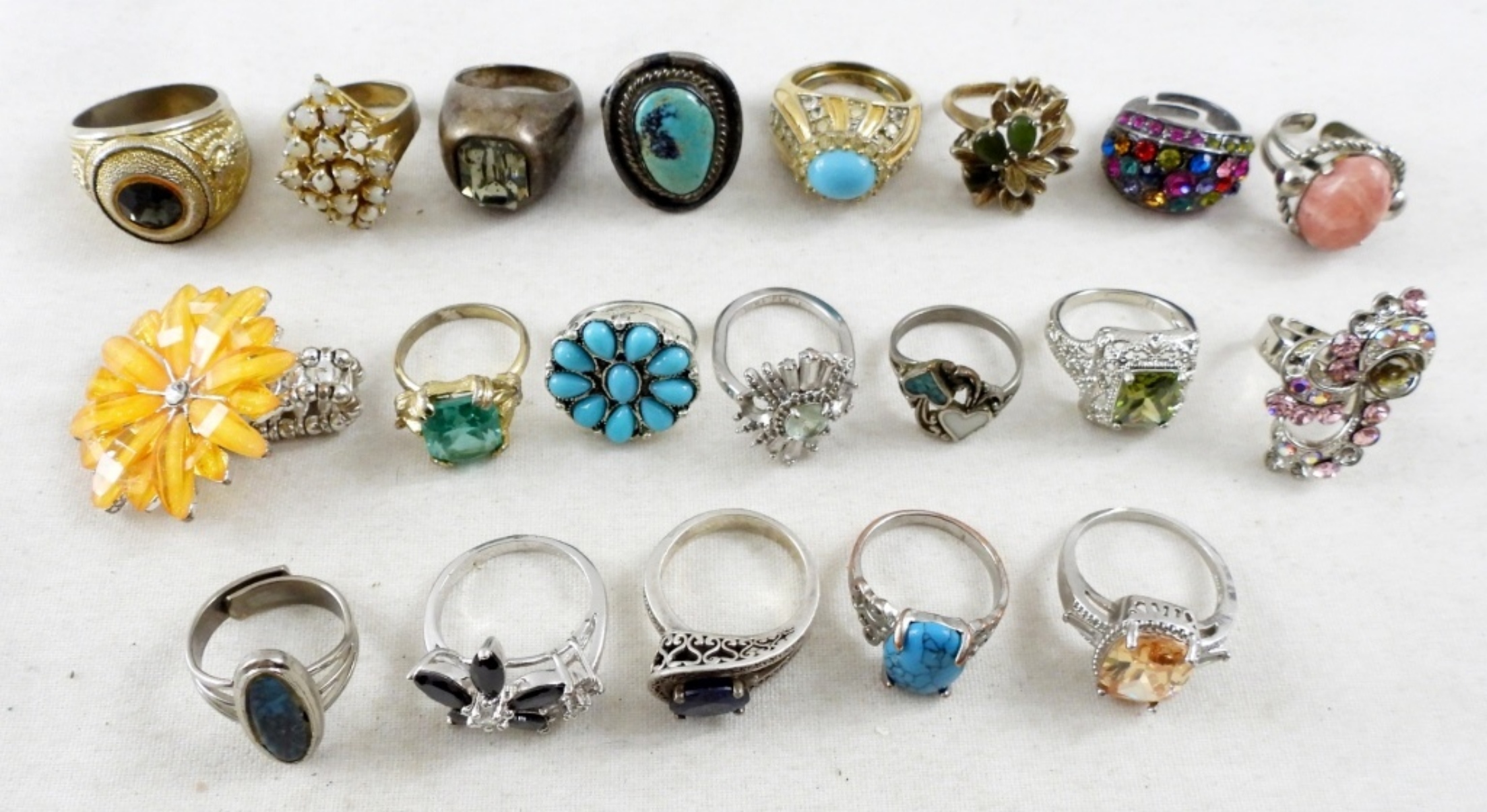 20 ASSORTED RING LOT (SIZES:5-10 ) SOME STONES MISSING FROM SETTINGS