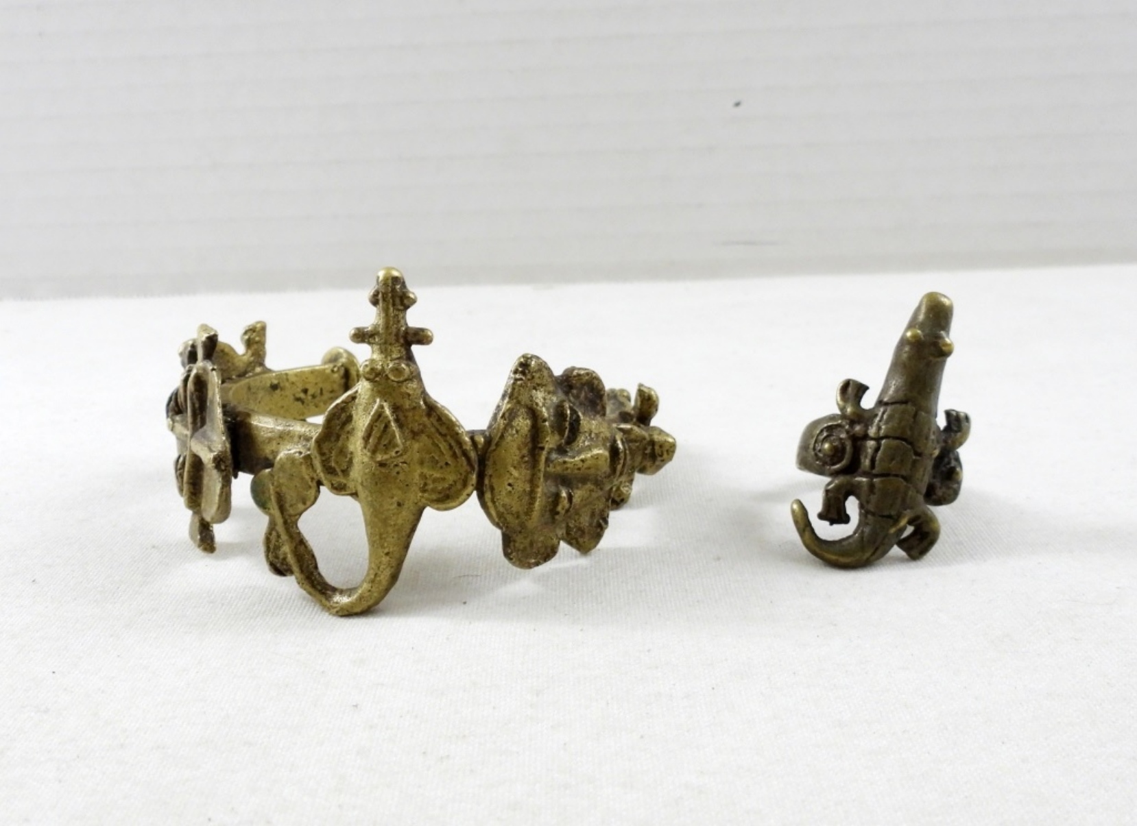 2 BRASS TRIBAL MASK DESIGN PENDANT, 1 RING (SIZE: 8) AND 1 CUFF BRACELET