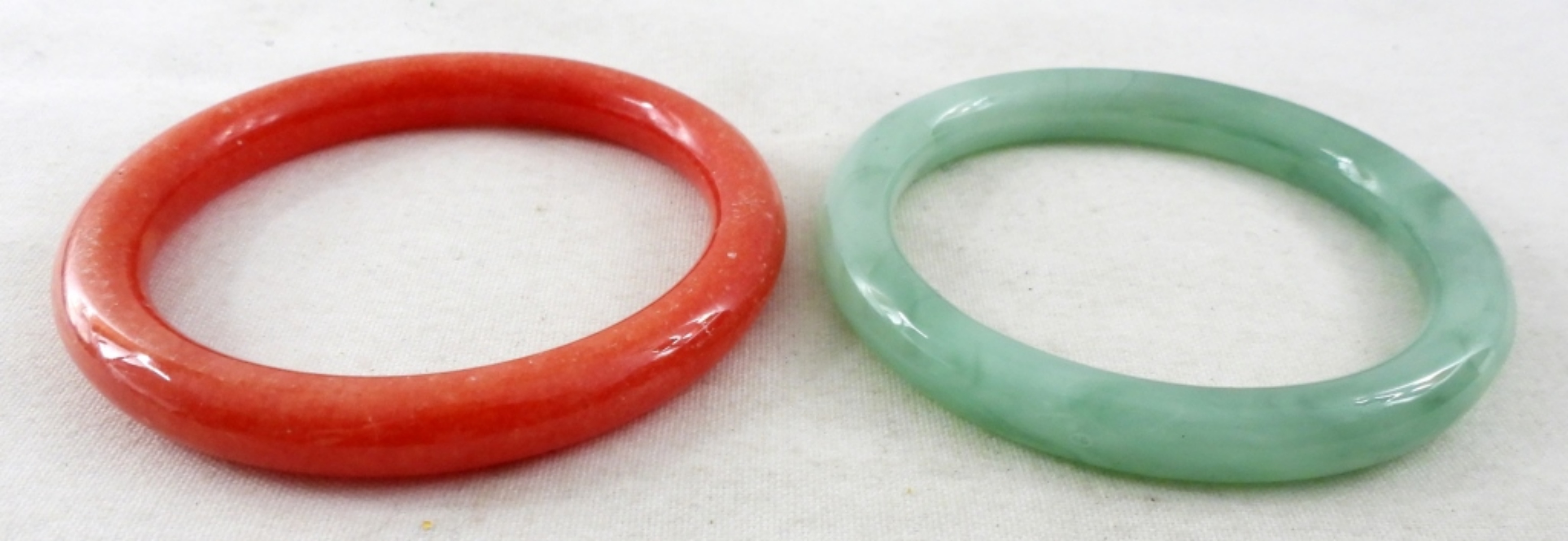 2 JADE STYLE BANGLE BRACELETS, 2.5IN DIAMETER