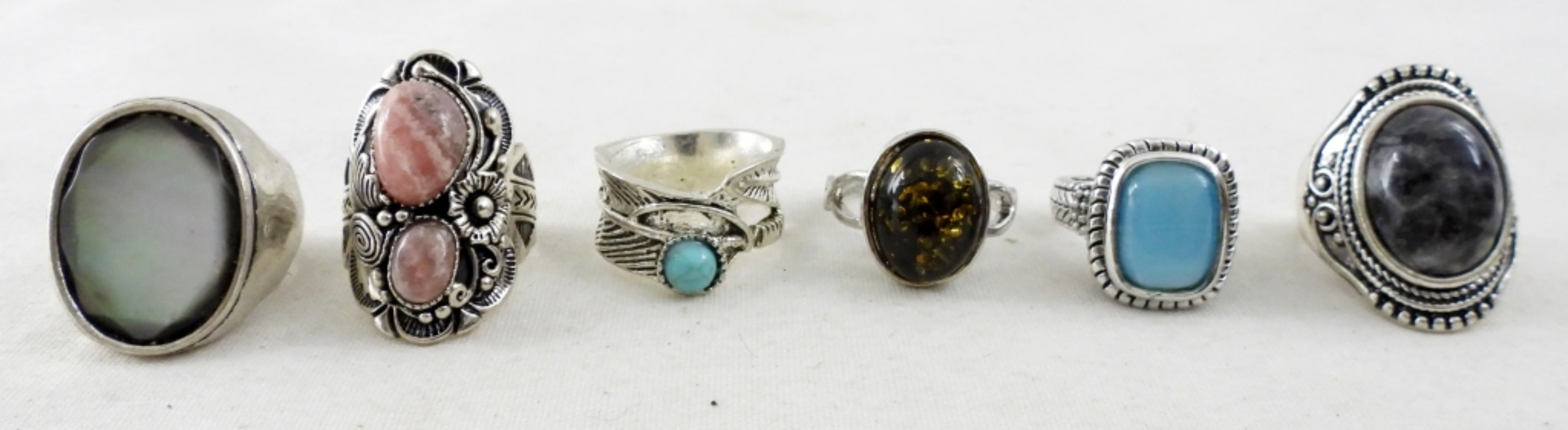 12 VARIOUS GEMSTONE RINGS IN ASSORTED SIZES RANGING: 5-10