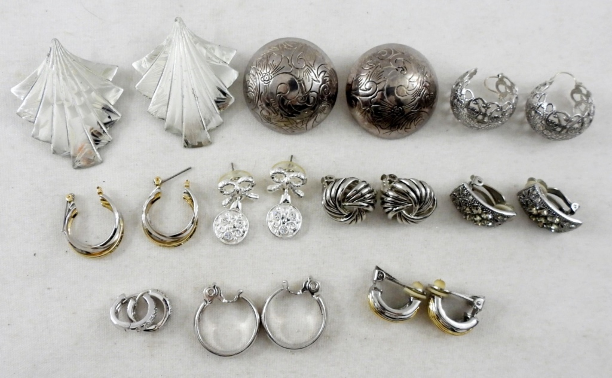 10 ASSORTED SILVER TONE PAIRS OF EARRINGS