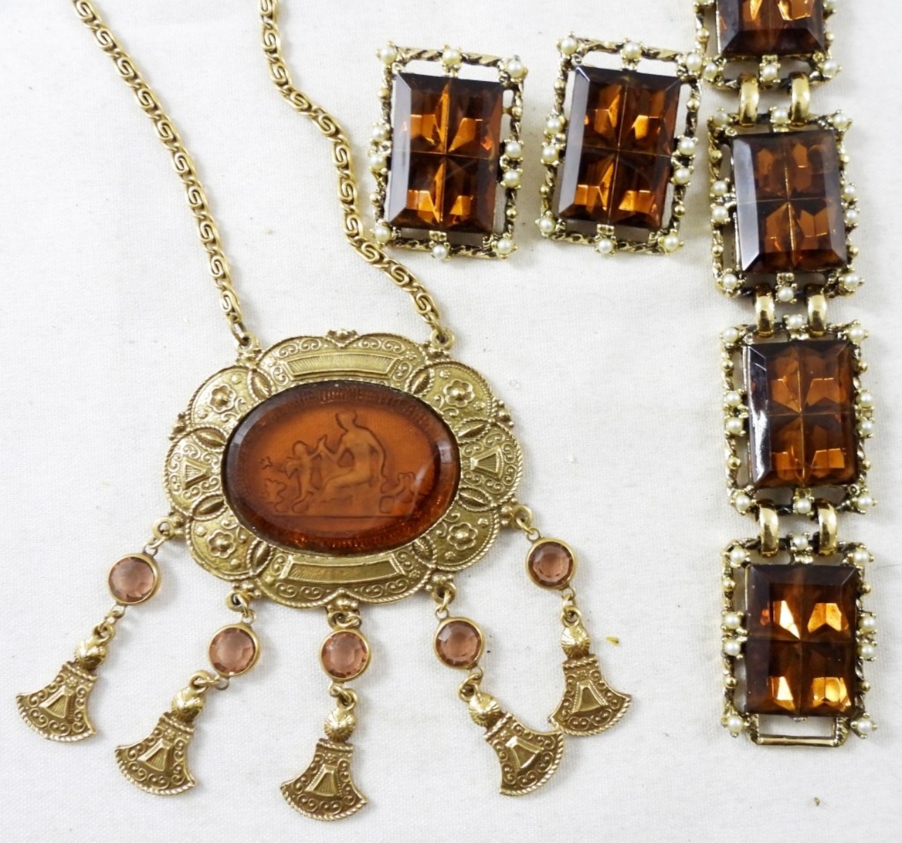 7 1/2″ BRACELET, 22″ NECKLACE & CLIP-ON EARRINGS