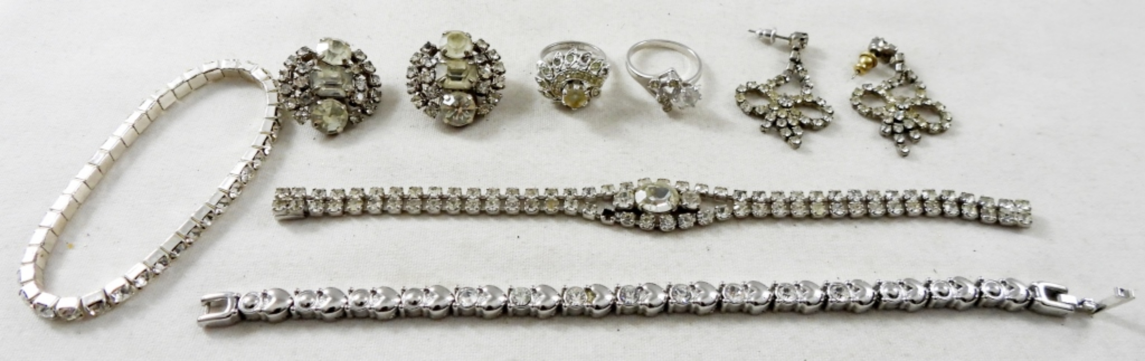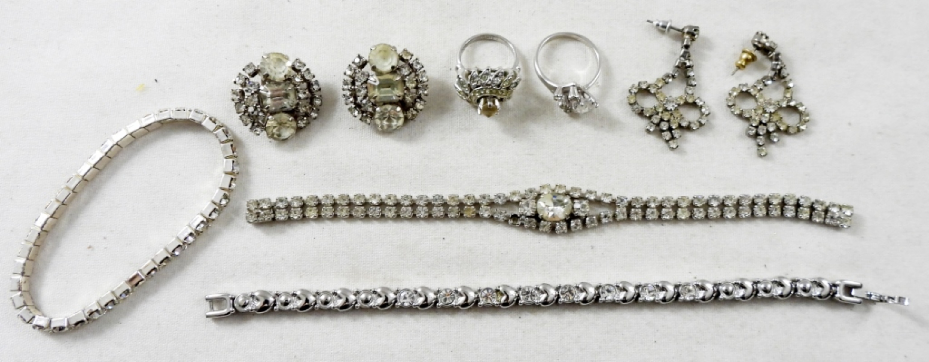 (3) BRACELETS one vintage missing stone, (2) EARRINGS clip-on & pierced, (2) RINGS 5.5 & 8