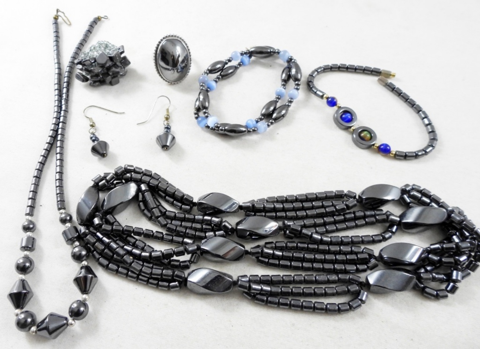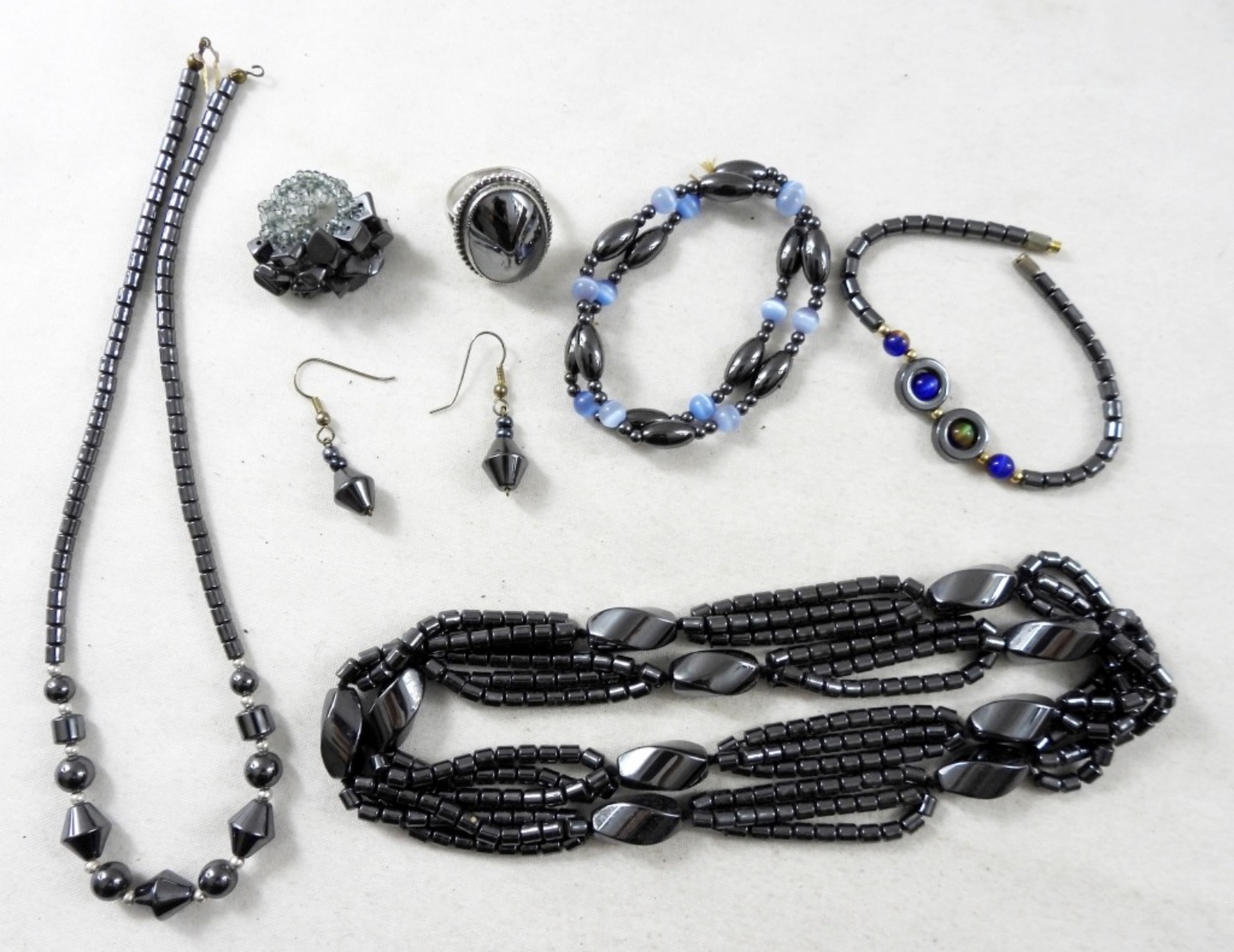 30″ NECKLACE, 16″ NECKLACE needs clasp fixed, (3) BRACELETS, (2) RINGS SIZE 5.5 & ADJUSTABLE, PIERCED EARRINGS