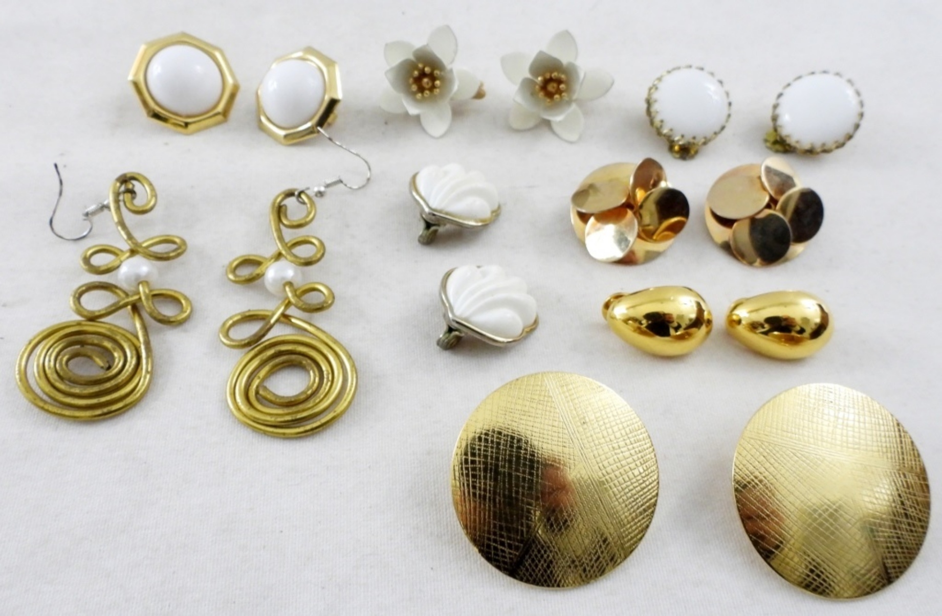8 EARRINGS TOTAL– 7 ARE CLIP ON AND ONE IS A DANGLE