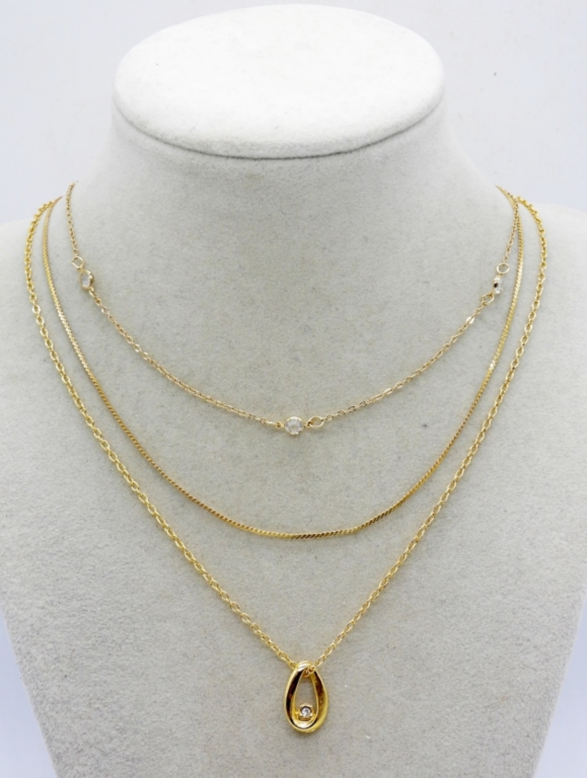 THREE CHAIN NECKLACES, 14″, 17″ & 18″.