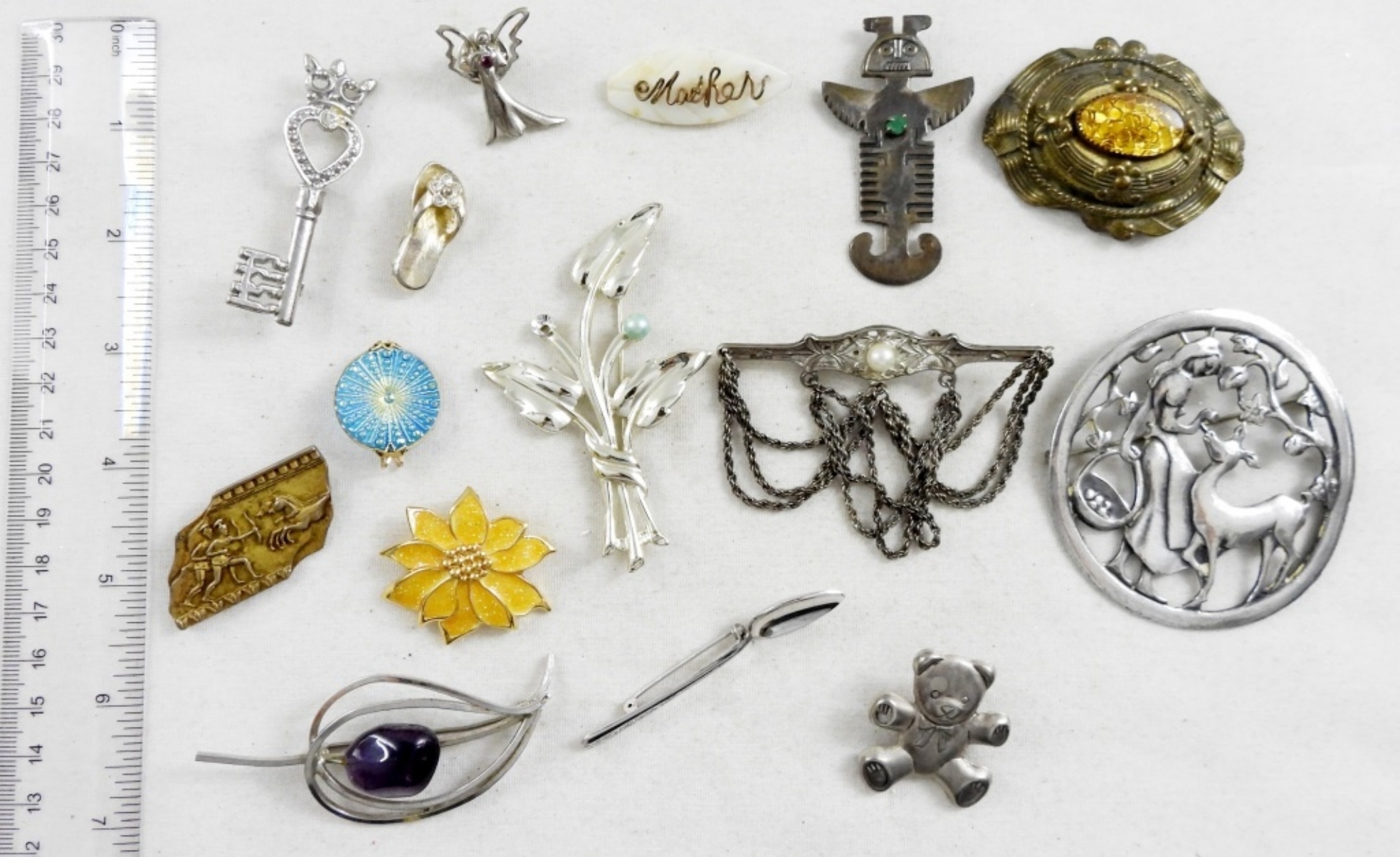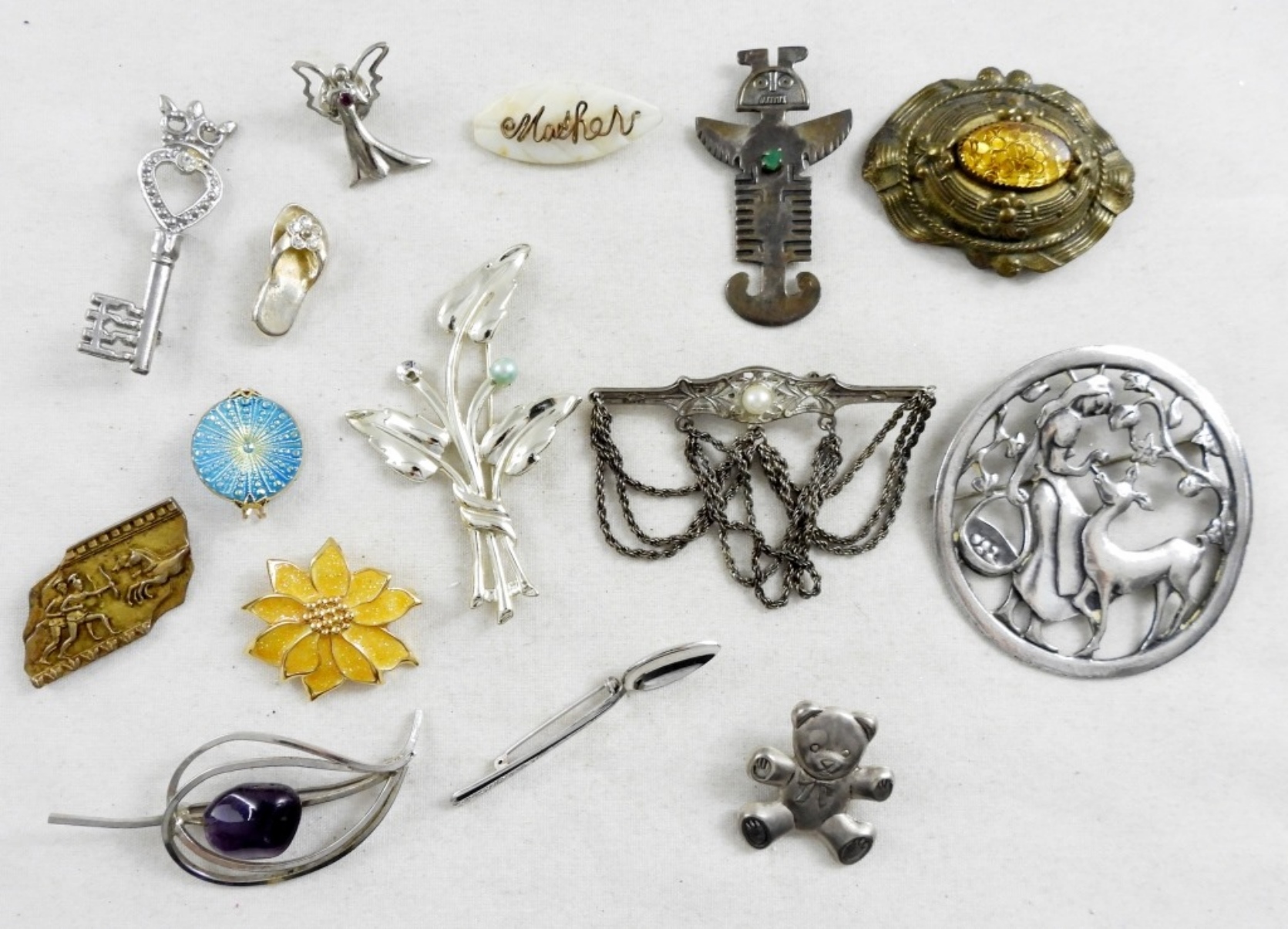 15 ASSORTED VINTAGE BROOCHES, BID NOW!