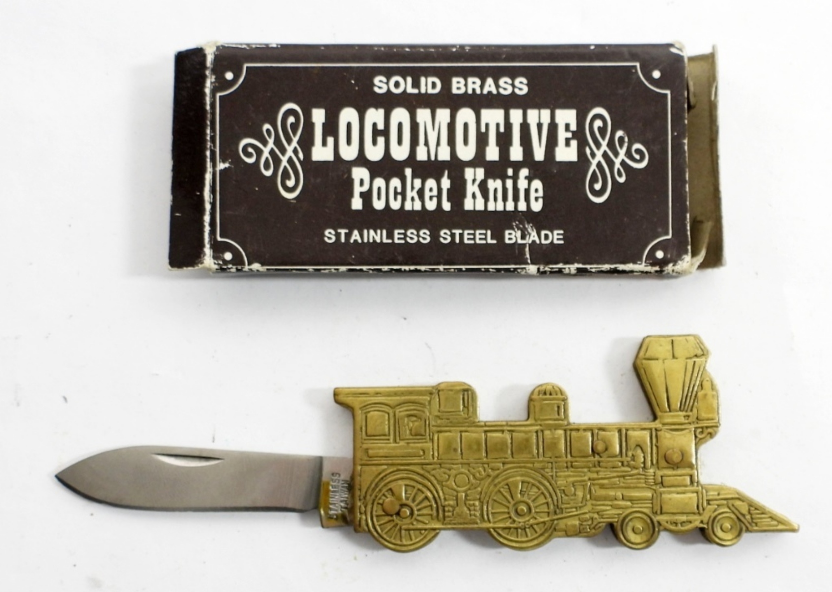 STEAM ENGINE COLLECTIBLE POCKET KNIFE, STAINLESS STEEL BLADE, TAIWAN,COMES WITH BOX, NICE CONDITION