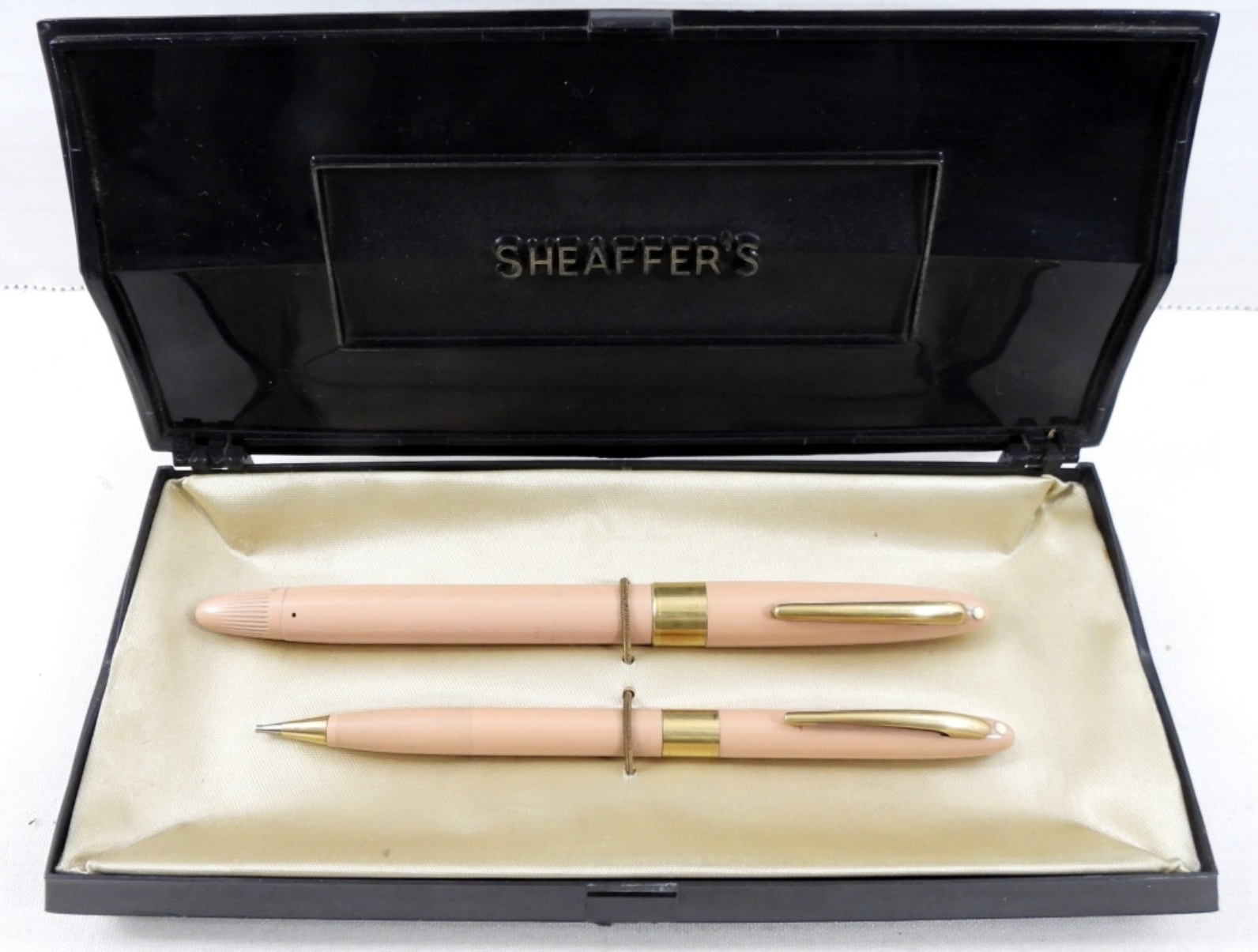 VINTAGE SHEAFFER PFM (PEN FOR MEN) FINE NIB TIP AND MECHANICAL PENCIL (UNTESTED BUT TWIST TO REFILL INK AND EXPAND PENCIL LEAD WORKING) PINK COLOR, IN ORIGINAL PACKAGING WITH ORIGINAL INSTRUCTIONS INSIDE