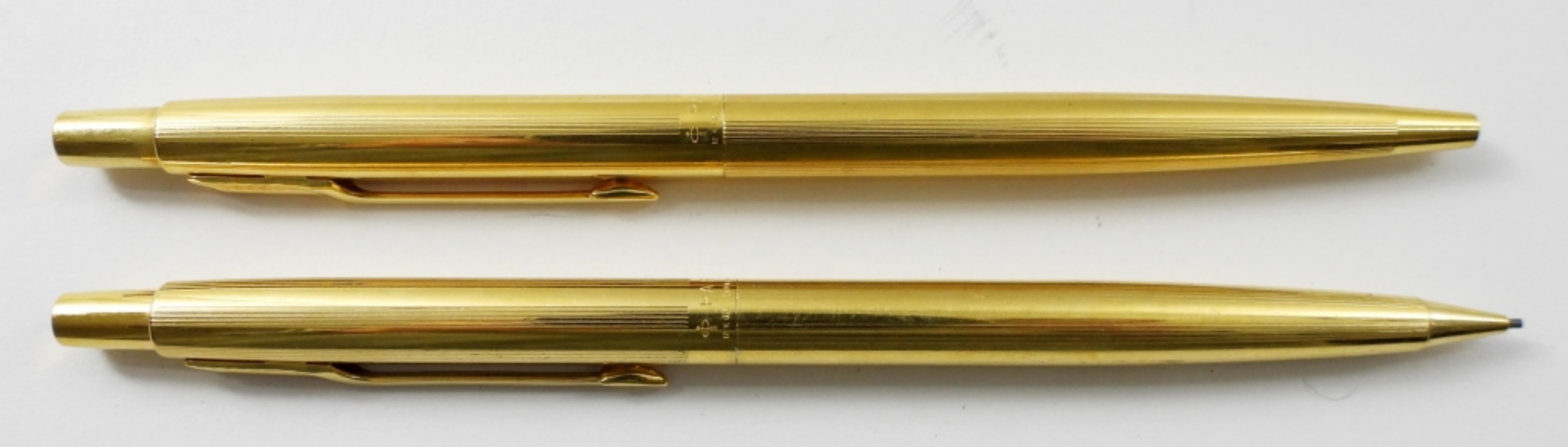 PARKER CLASSIC 14K GOLD FILLED PEN AND PENCIL SET IN WORKING ORDER. PEN IS BLUE INK MEDIUM TIP POINT, NO PACKAGING