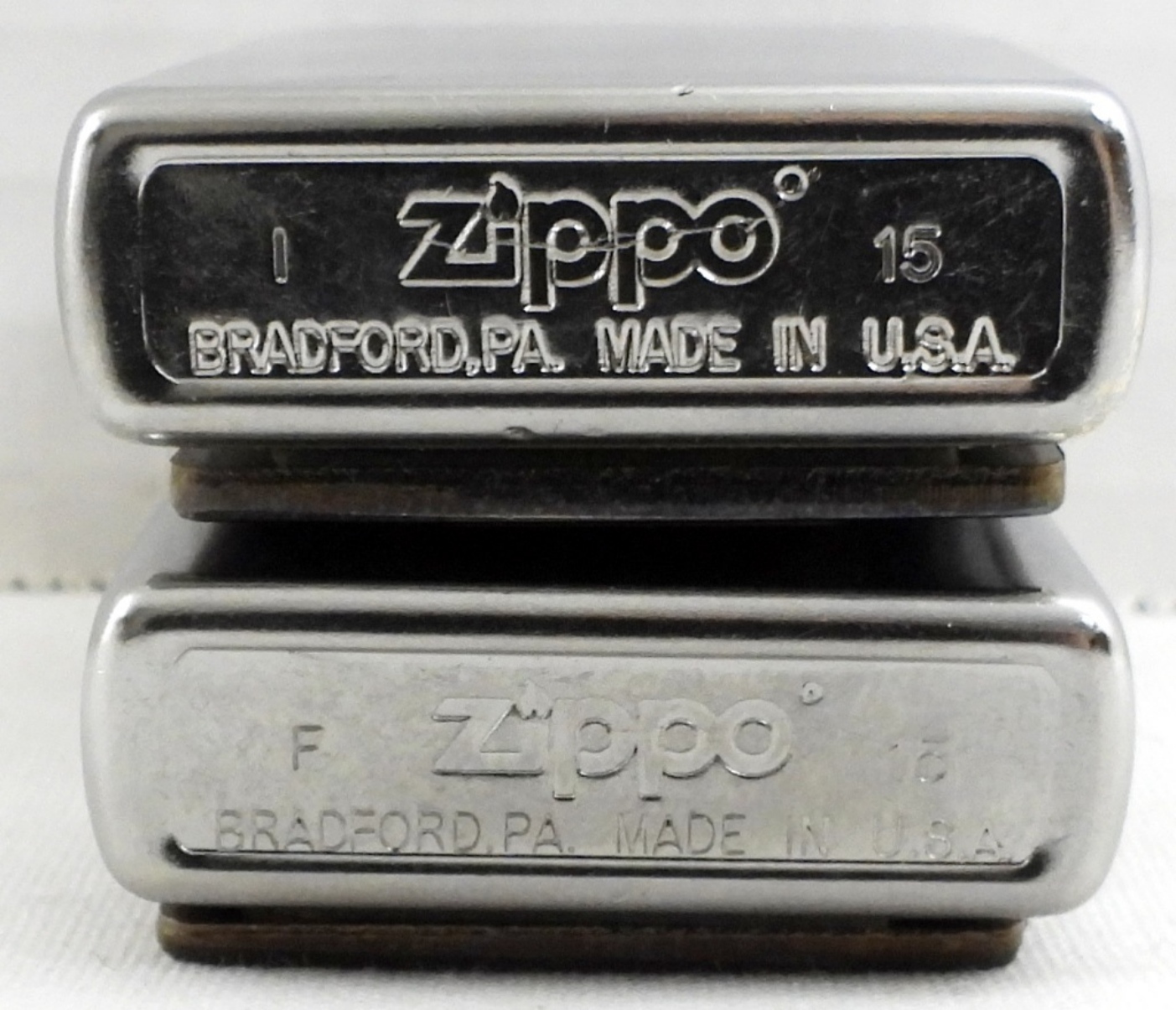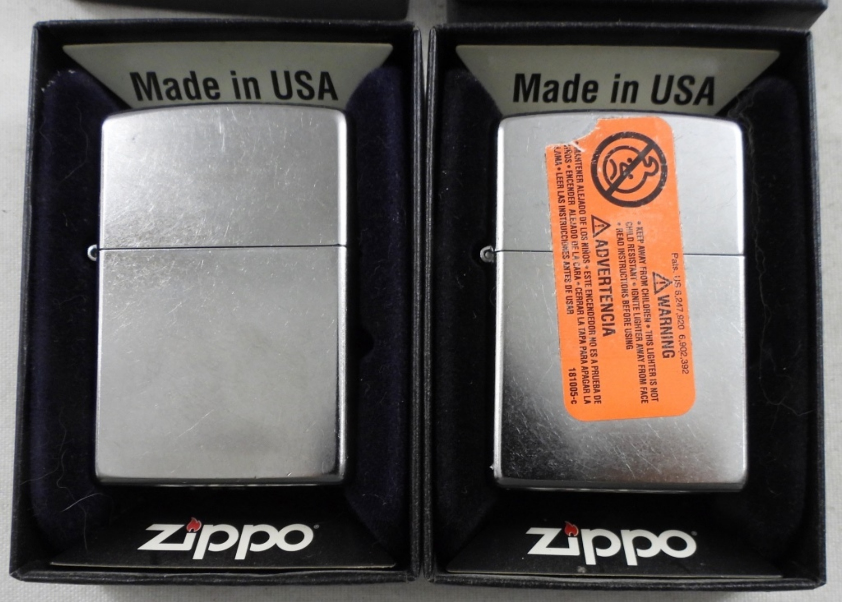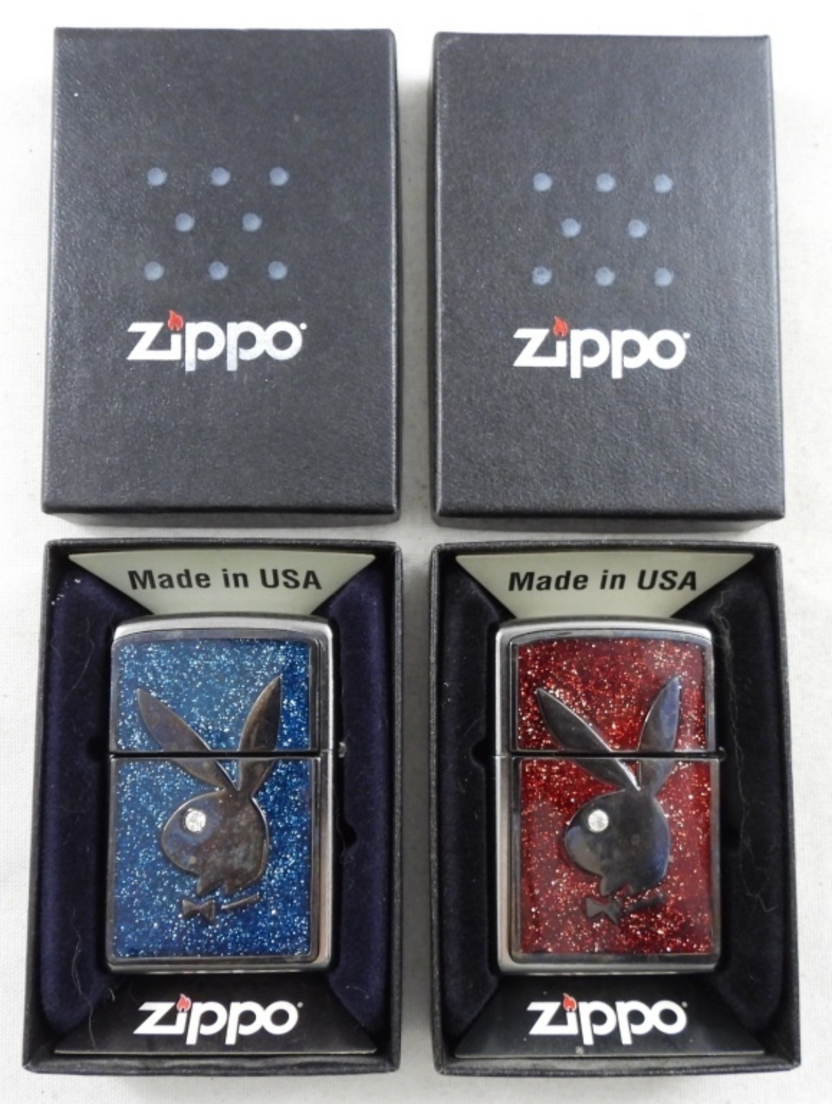 1- RED GLITTER SEALED, 1- BLUE GLITTER FRIED, IN TWO ZIPPO BOXES
