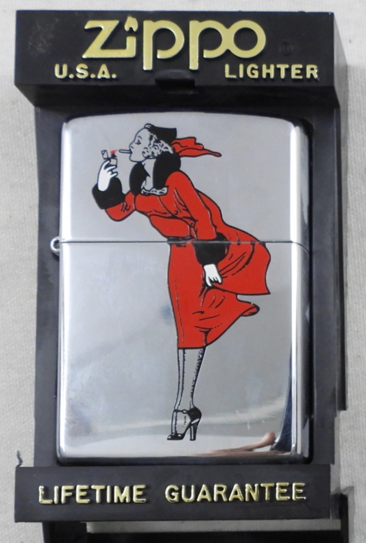 SEALED, IN A ZIPPO BOX, VARGA GIRL IN A RED DRESS