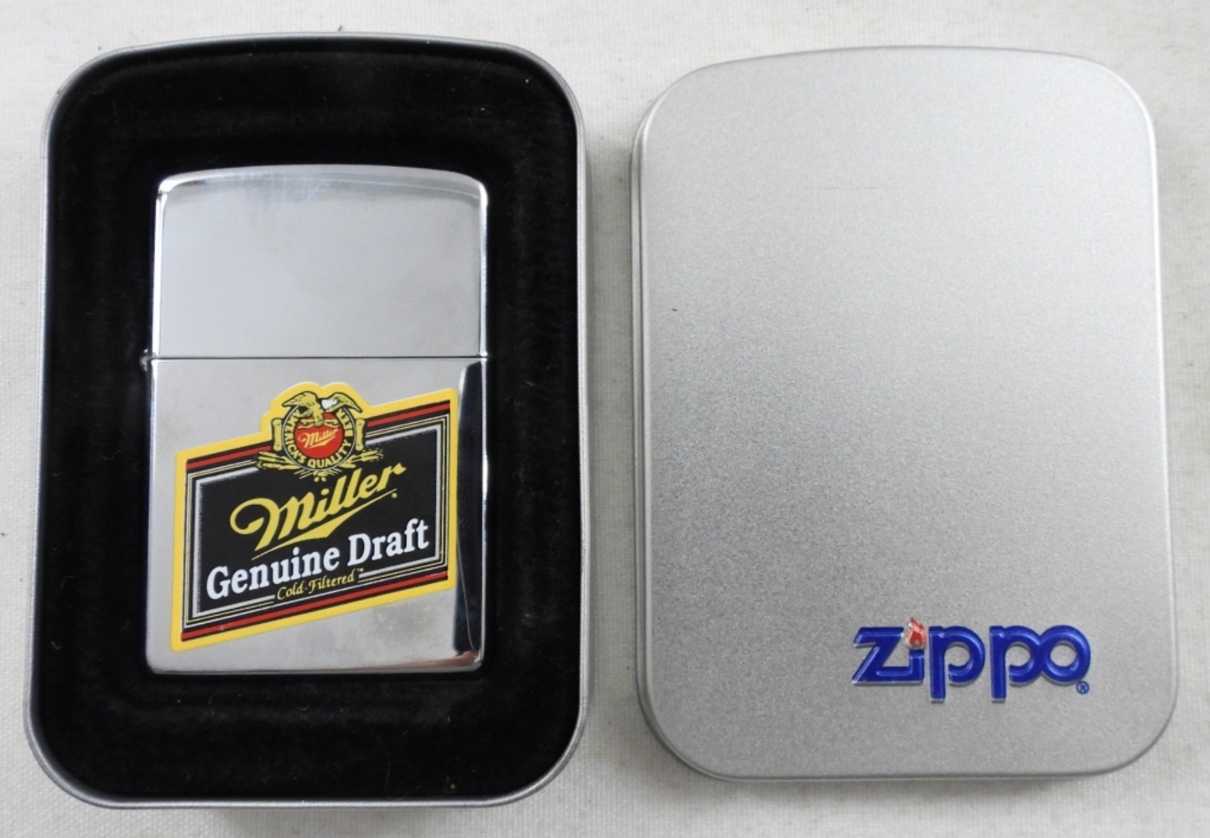 SEALED, IN ORIGINAL ZIPPO BOX, MILLER GENUINE DRAFT BEER LOGO