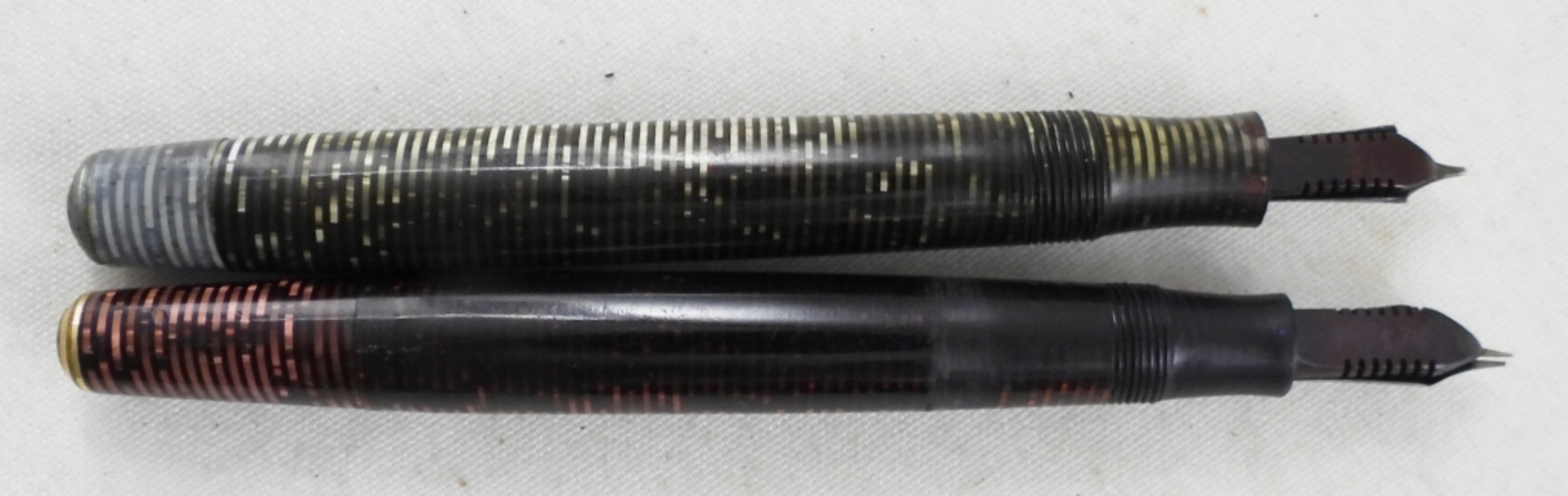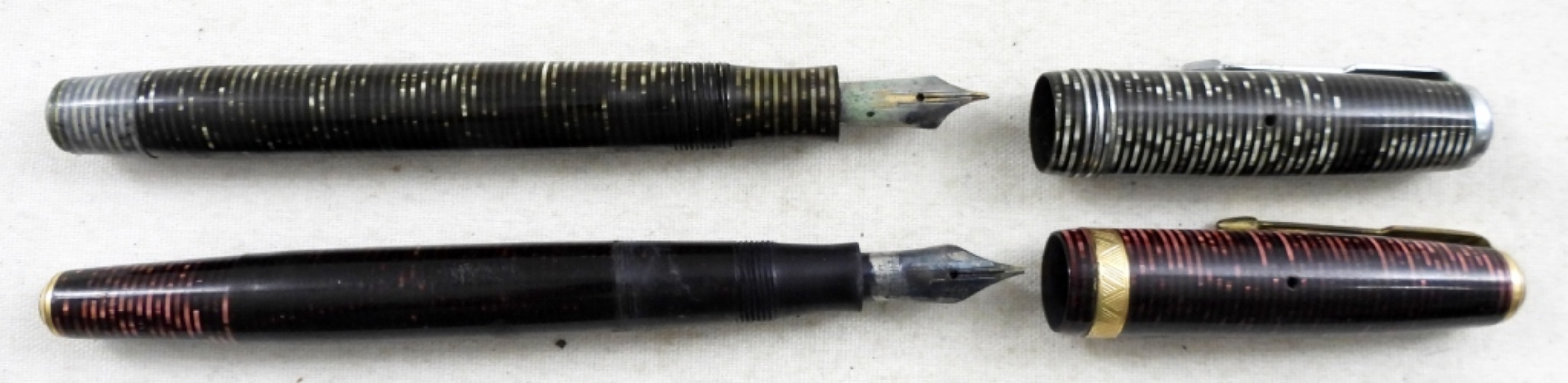 UNTESTED VINTAGE PARKER VACUMATIC (NO 8 RED STRIPE) (NO 27 GRAY STRIPE), MAY NEED TO BE RESTORED/NIBS REPLACED, BEAUTIFUL FINISHES AND VINTAGE PARKER CLIPS FULLY INTACK