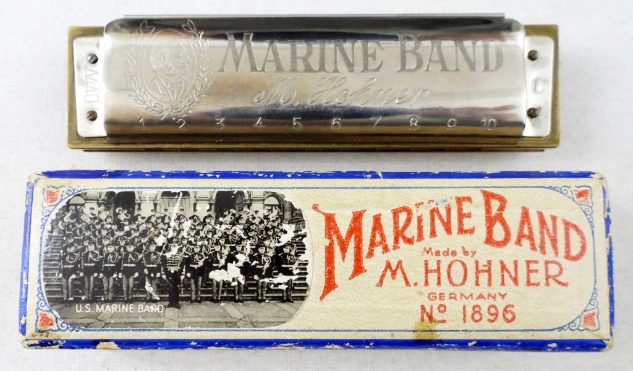 VINTAGE MARINE BAND HARMONICA MADE BY M HOHNER GERMANY NO 1896, IN ORIGINAL PACKAGING, UNTESTED