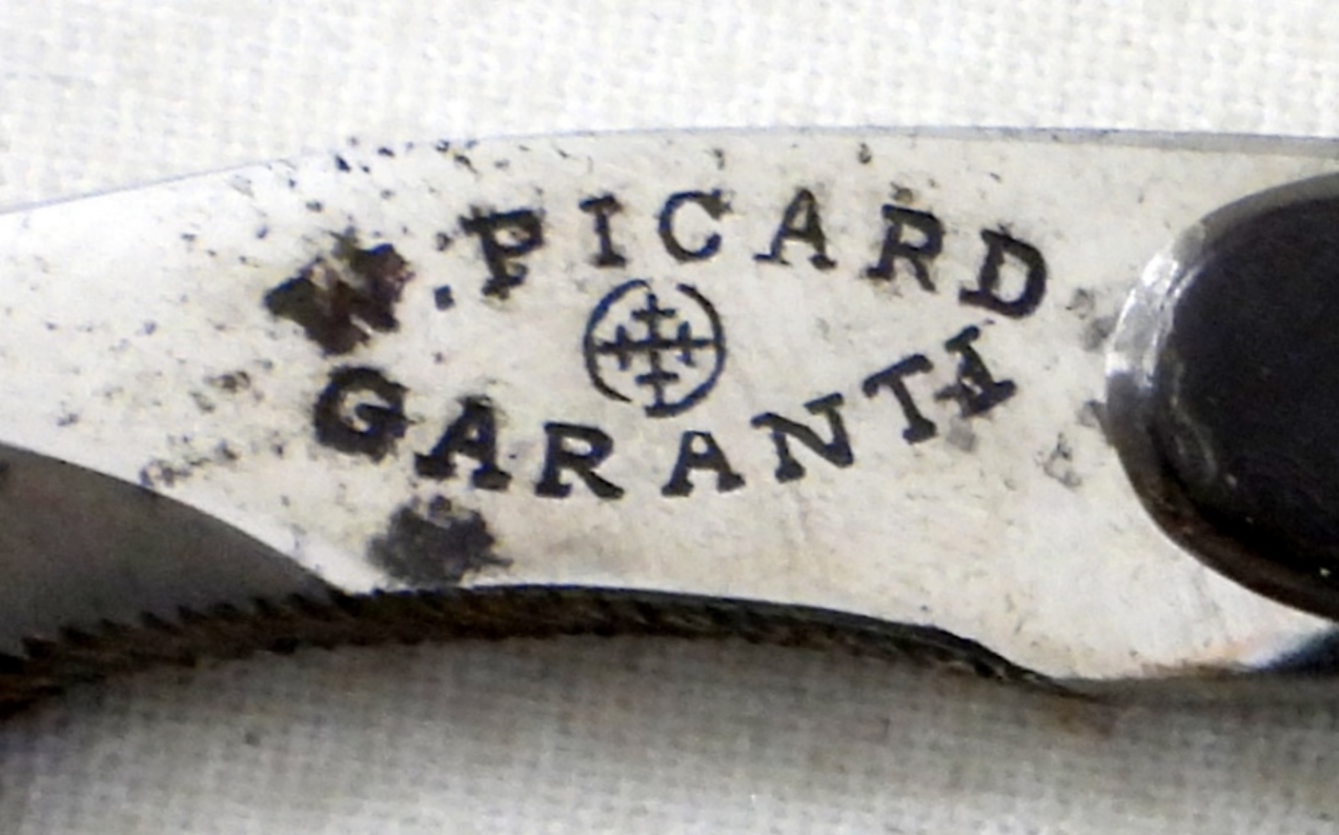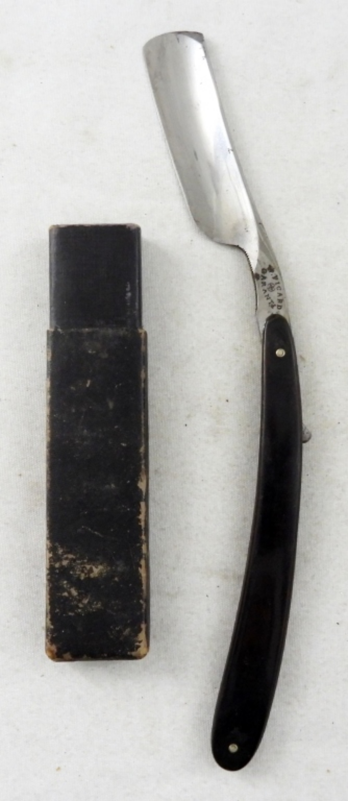 VINTAGE W PICARD GARANTI STRAIGHT EDGE RAZOR, IN PARTIAL PACKAGING, BID NOW!