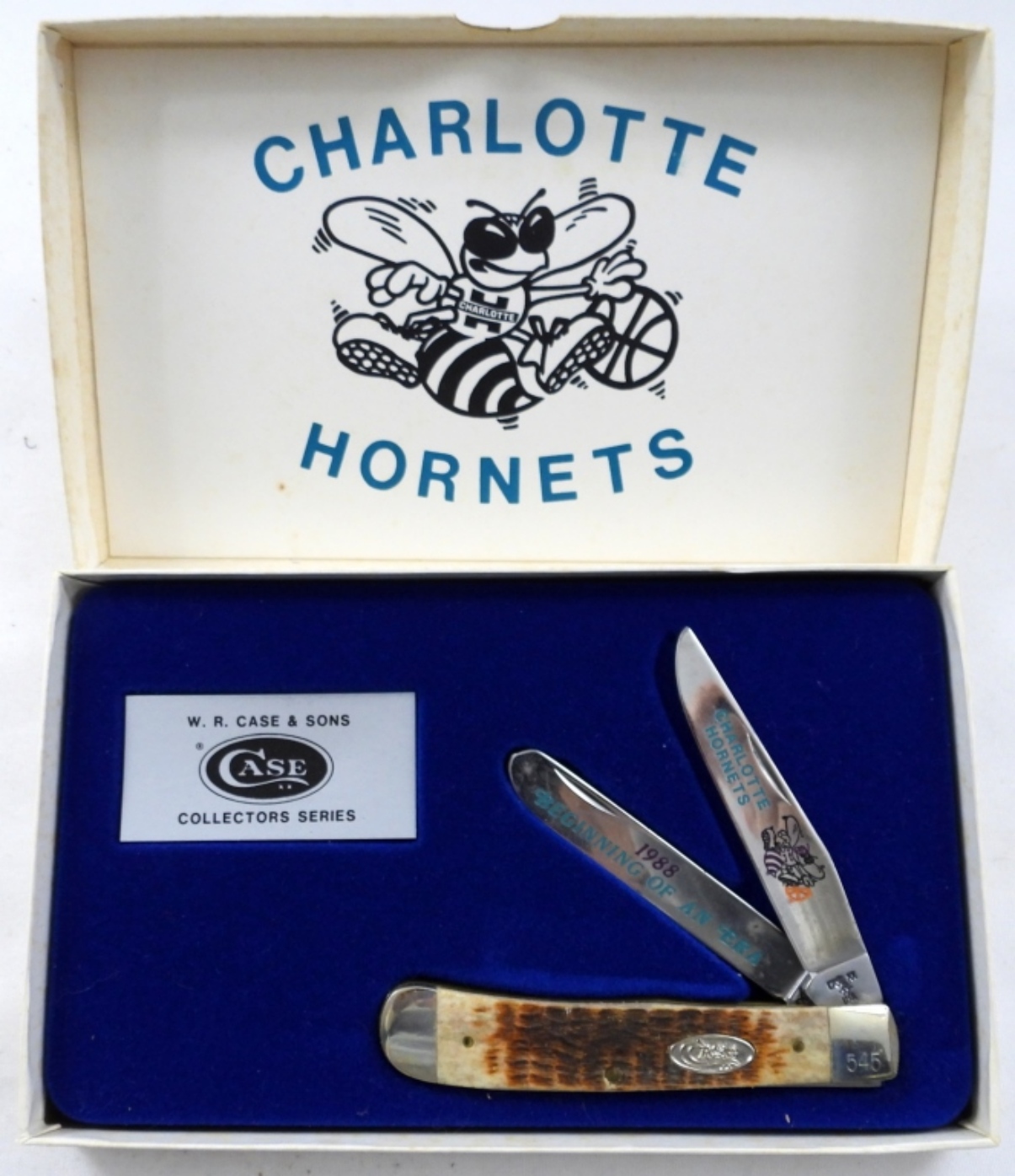 1988 CHARLOTTE HORNETS CASE COLLECTORS SERIES KNIFE, IN ORIGINAL PACKAGING