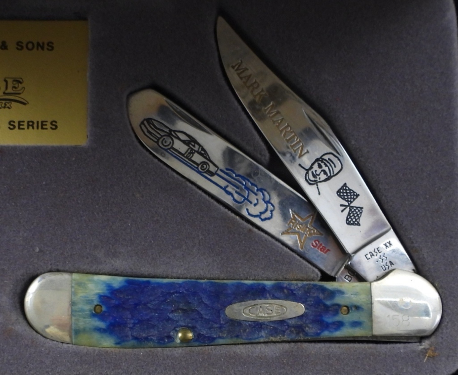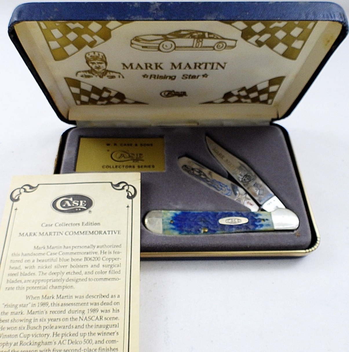 CASE COLLECTORS EDITION MARK MARTIN COMMEMORATIVE KNIFE, 1/1000, IN ORIGINAL BOX, BID NOW!