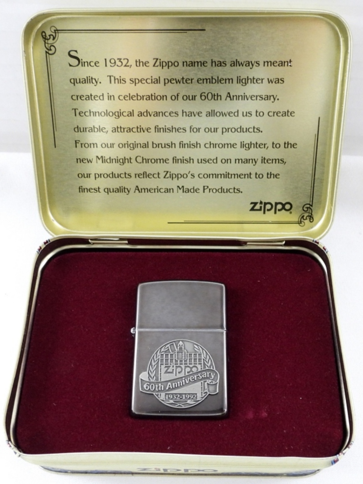 1992 60TH ANNIVERSARY ZIPPO, UNFIRED, VIII