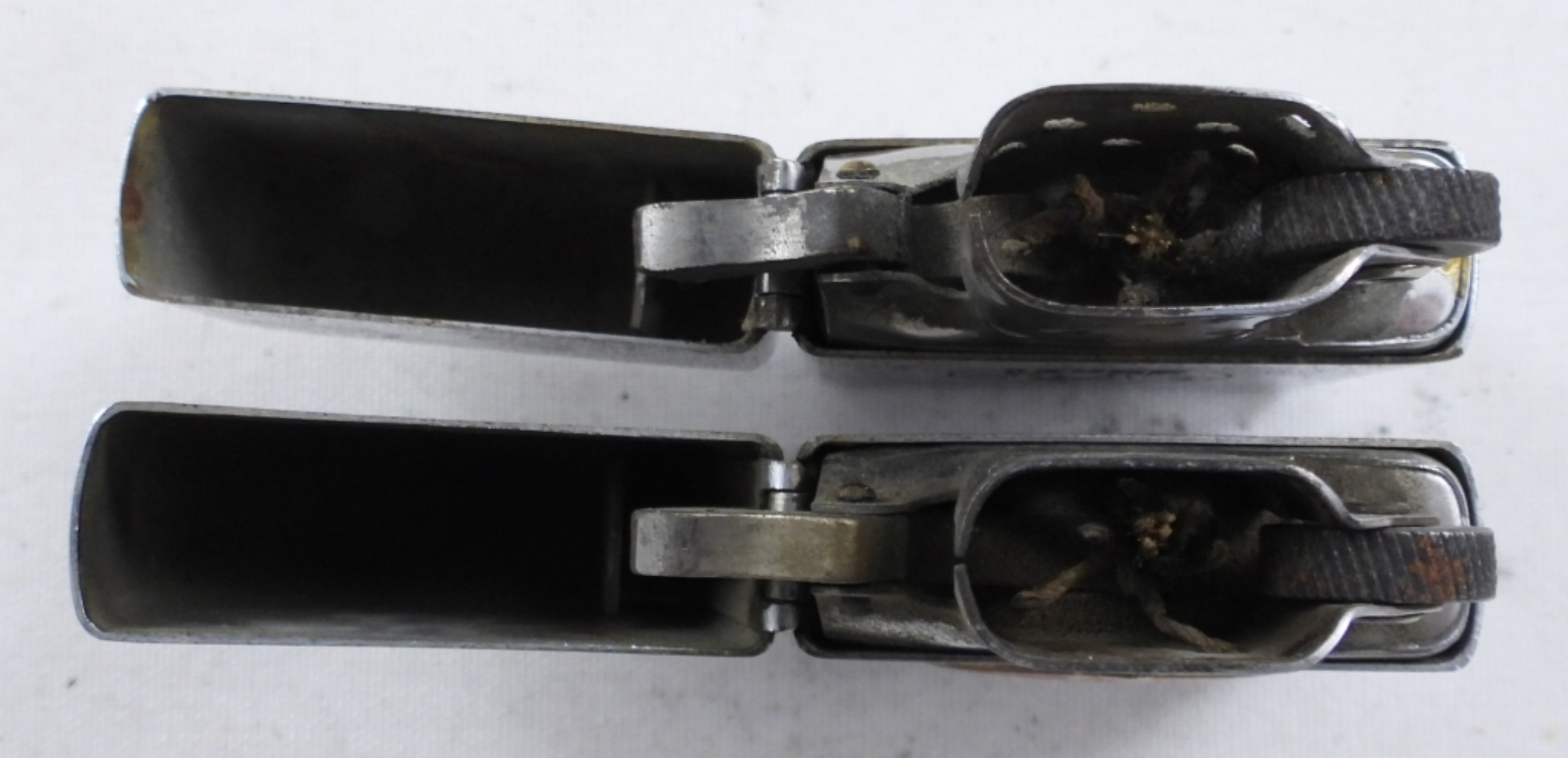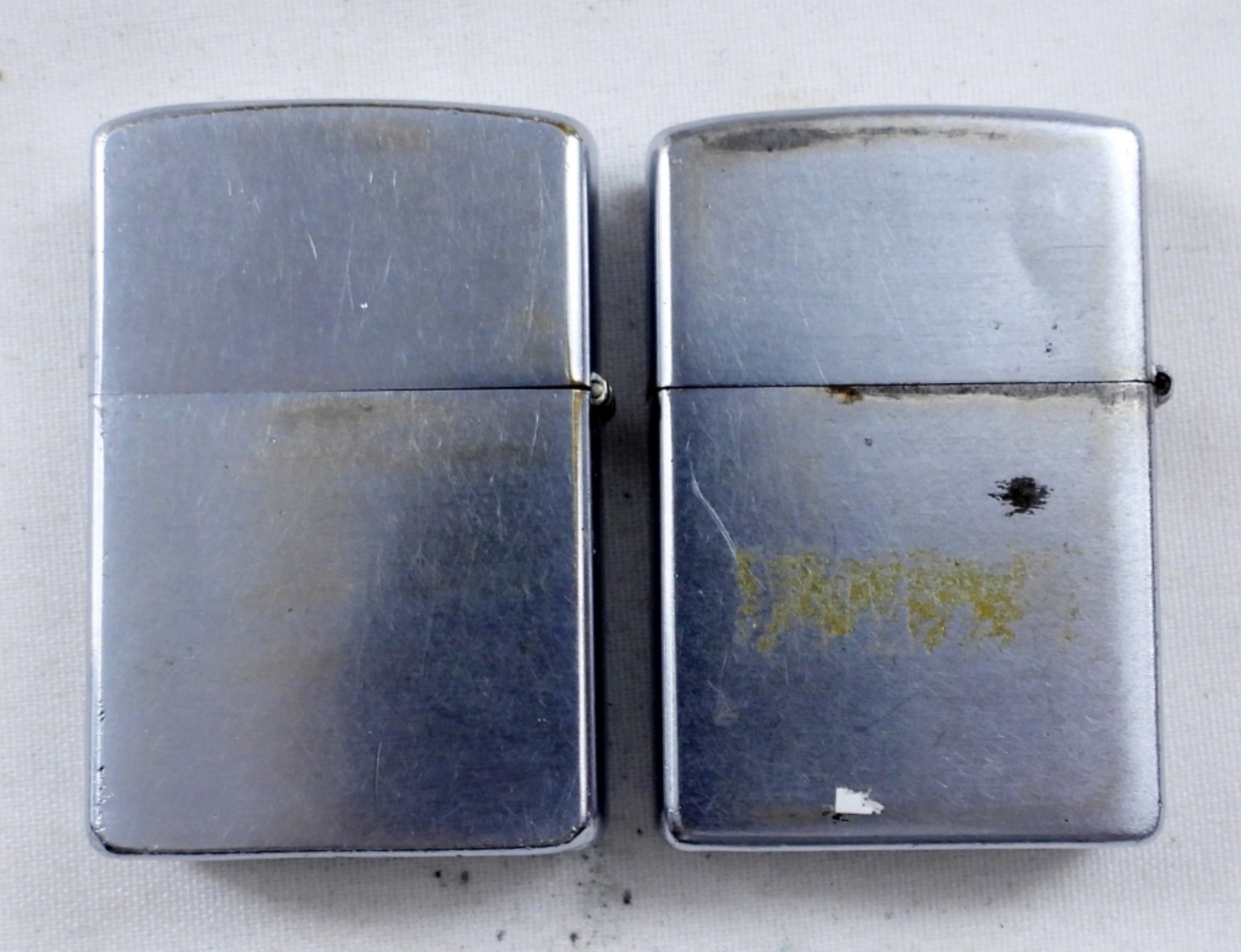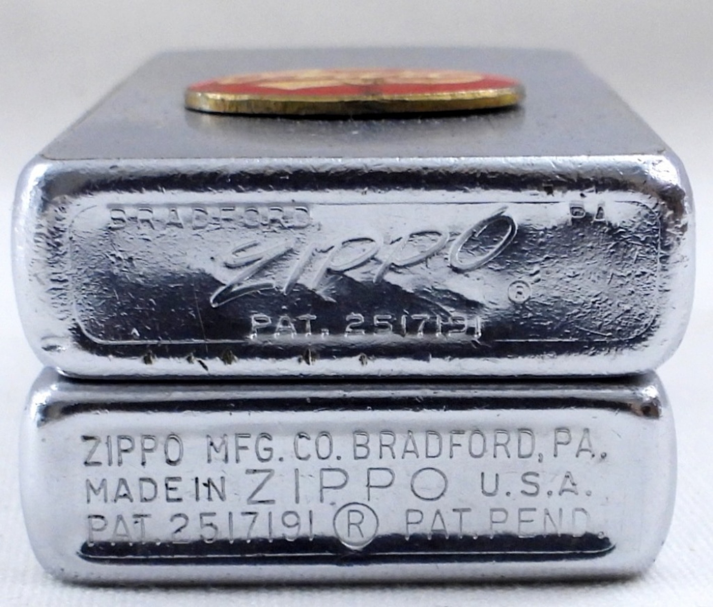 VTINTAGE ZIPPO- ZONE, PAT#2517191, INSERT MATCHES, FIRED, COMES WITH ZIPPO BOX. VINTAGE 1958 PEARL LAUGHER ZIPPO, FIRED NO BOX.