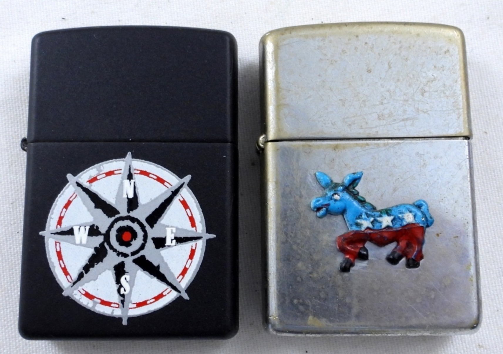 VINTAGE 1998 MARLBORO COMPASS ZIPPO, UNFIRED. 1980 ZIPPO WITH A DONKEY ON THE FRONT , FIRED.