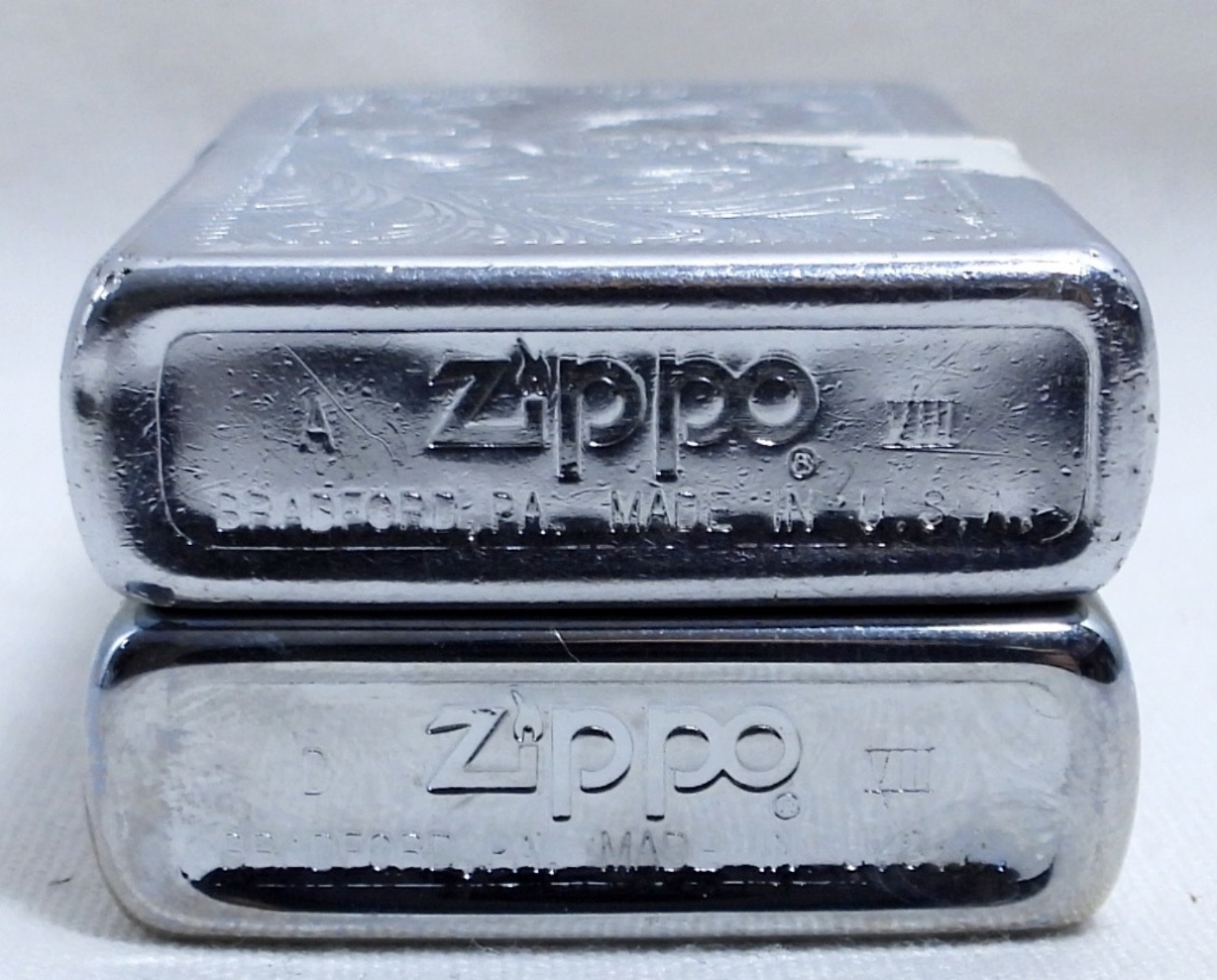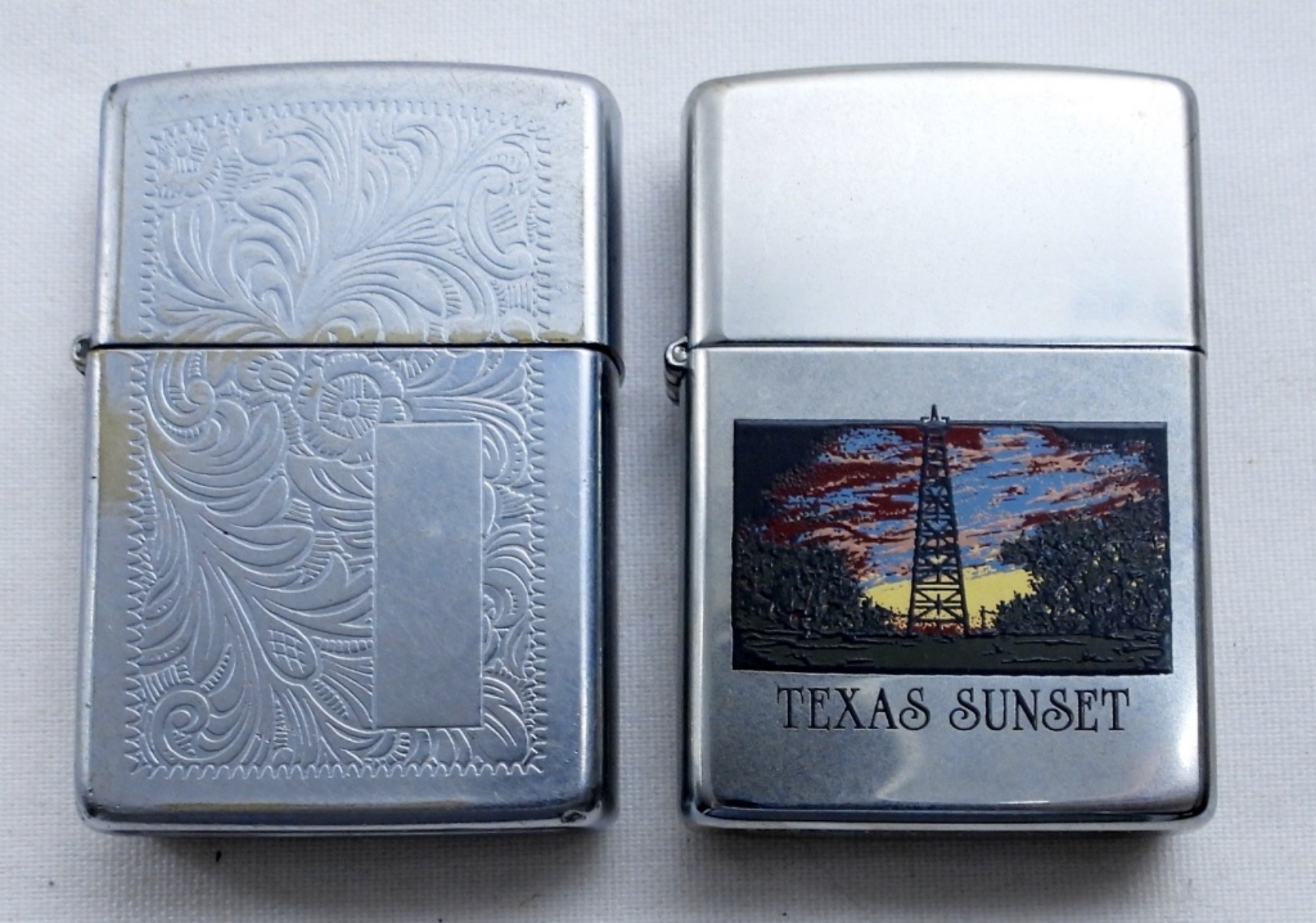 VTG 1992 ZIPPO WITH DESIGN ON THE FRONT, FIRED. 1992 VINTAGE TEXAS SUNSET ZIPPO, UNFIRED.