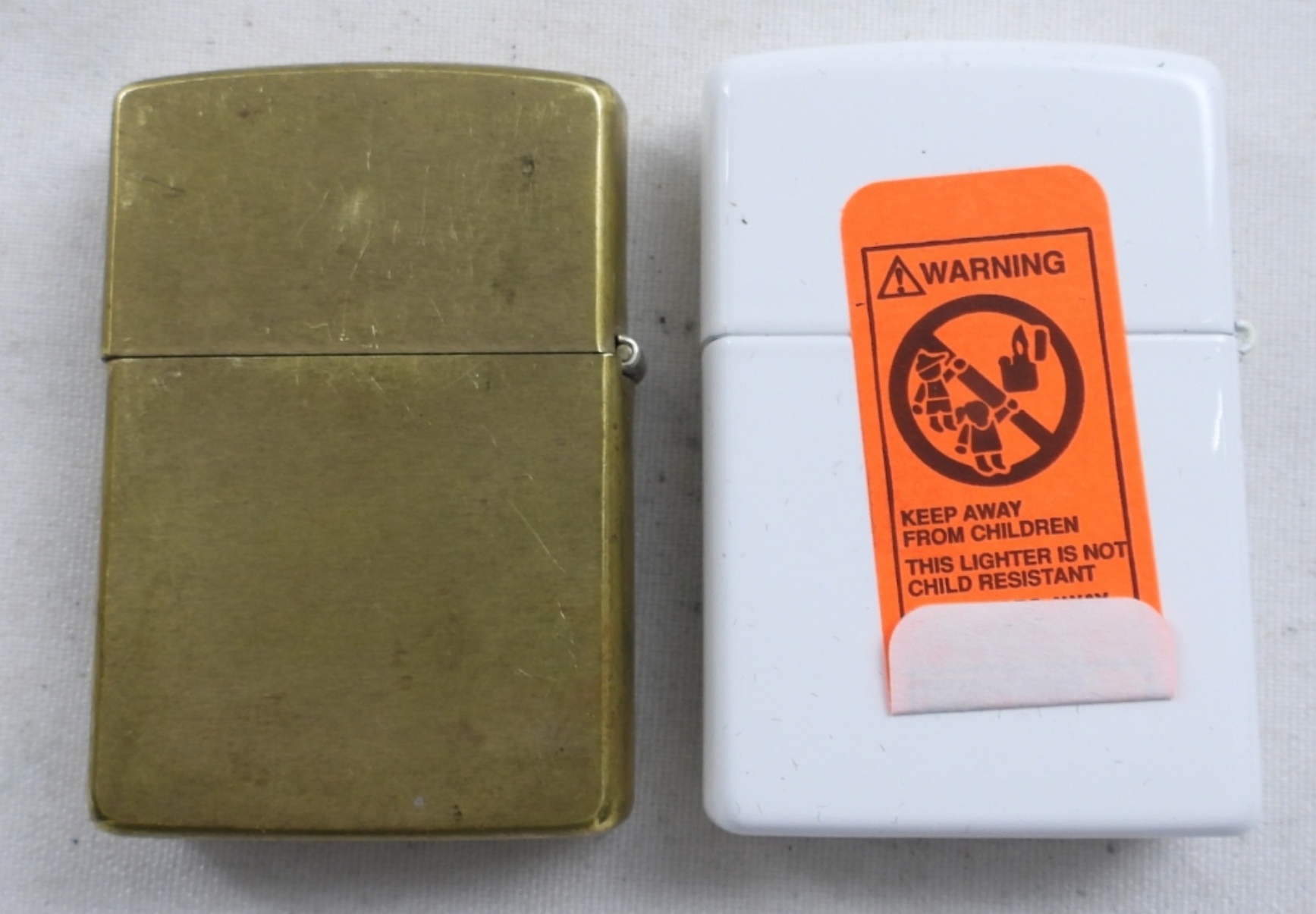 VINTAGE 1932-1992 GOLD TONED CAMEL ZIPPO, FIRED. WHITE & SILVER TONE CAMEL ZIPPO, SEALED.