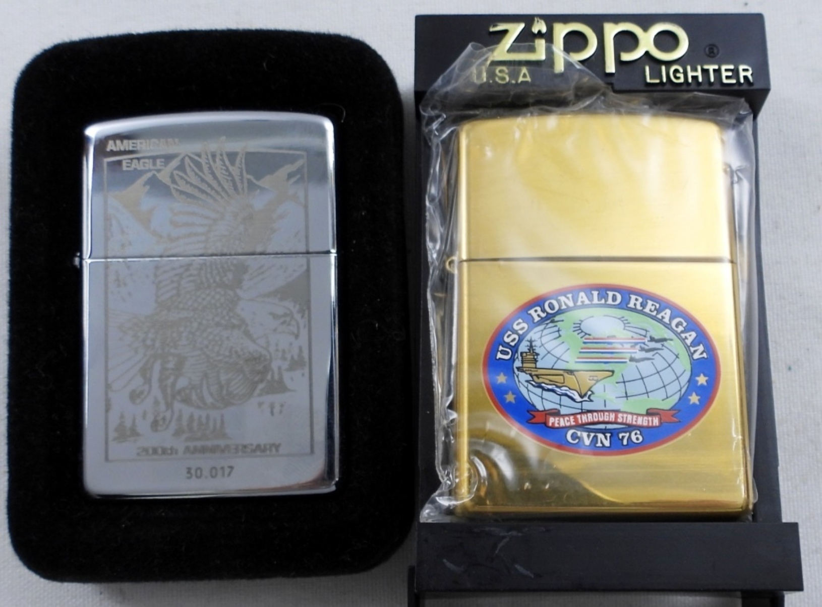 1994 200TH AMERICAN EAGLE X, SEALED. 2003 USS RONALD REGAN “PEACE THROUGH STRENGTH” CAN 76, SEALED.