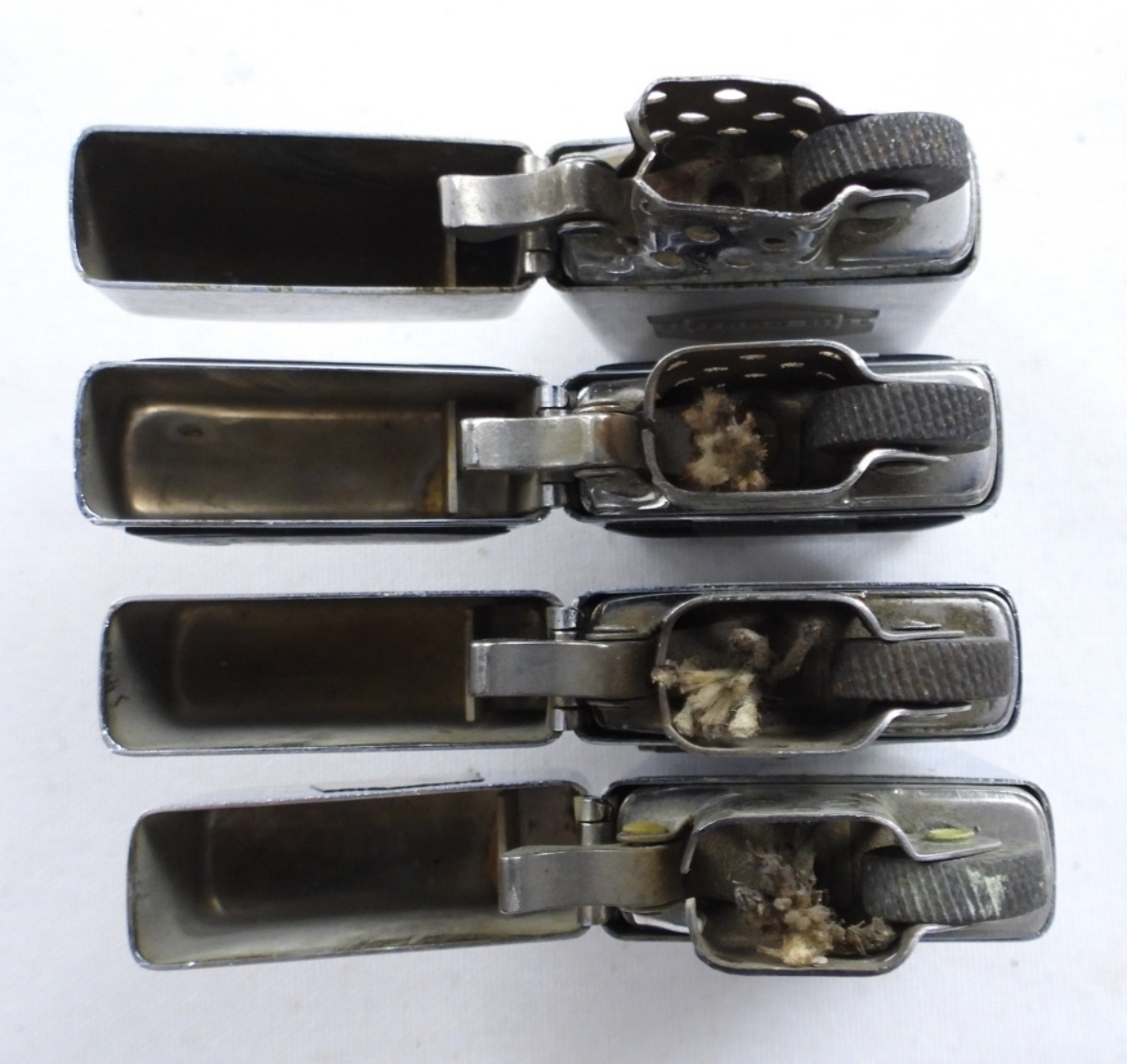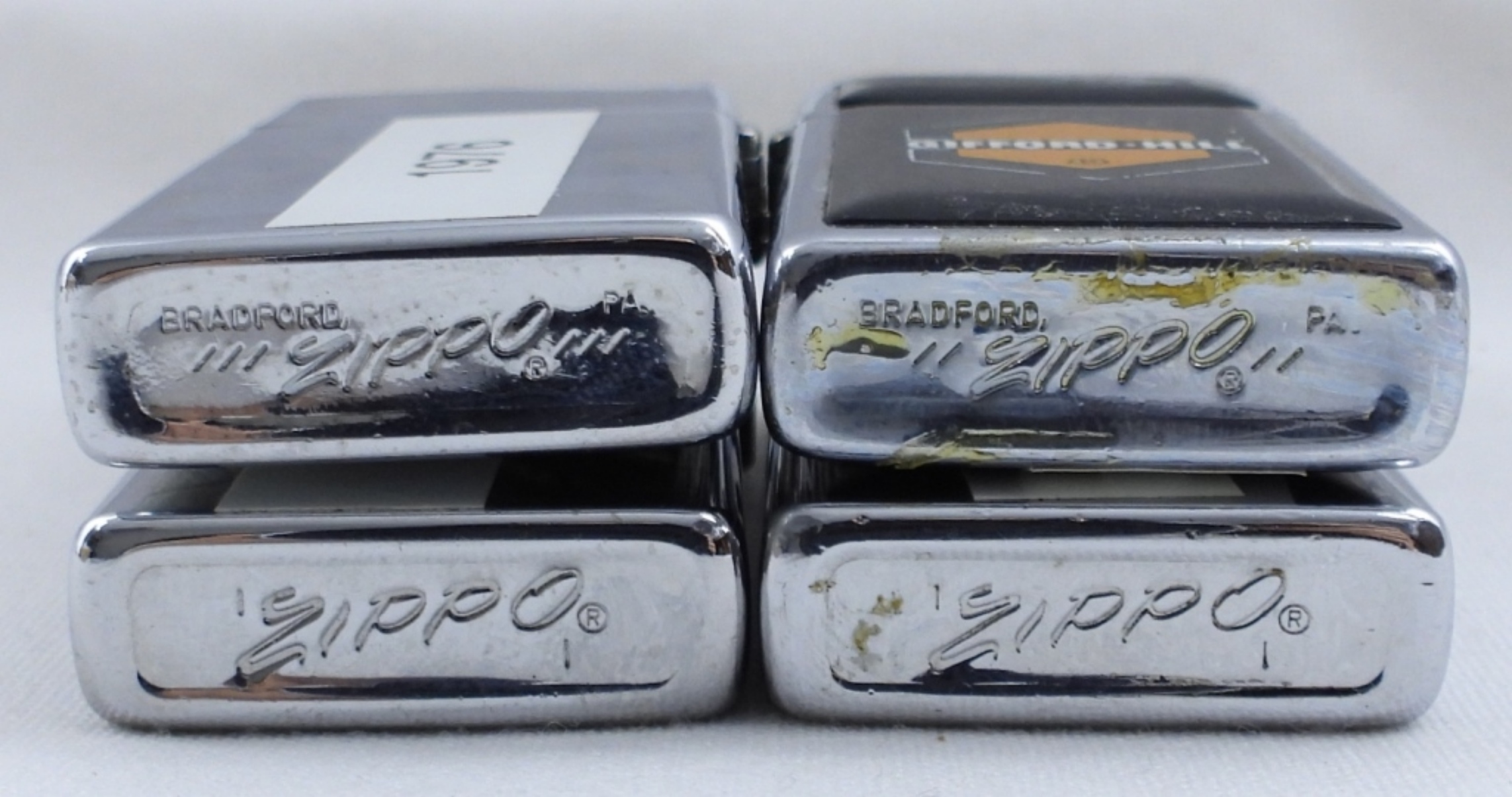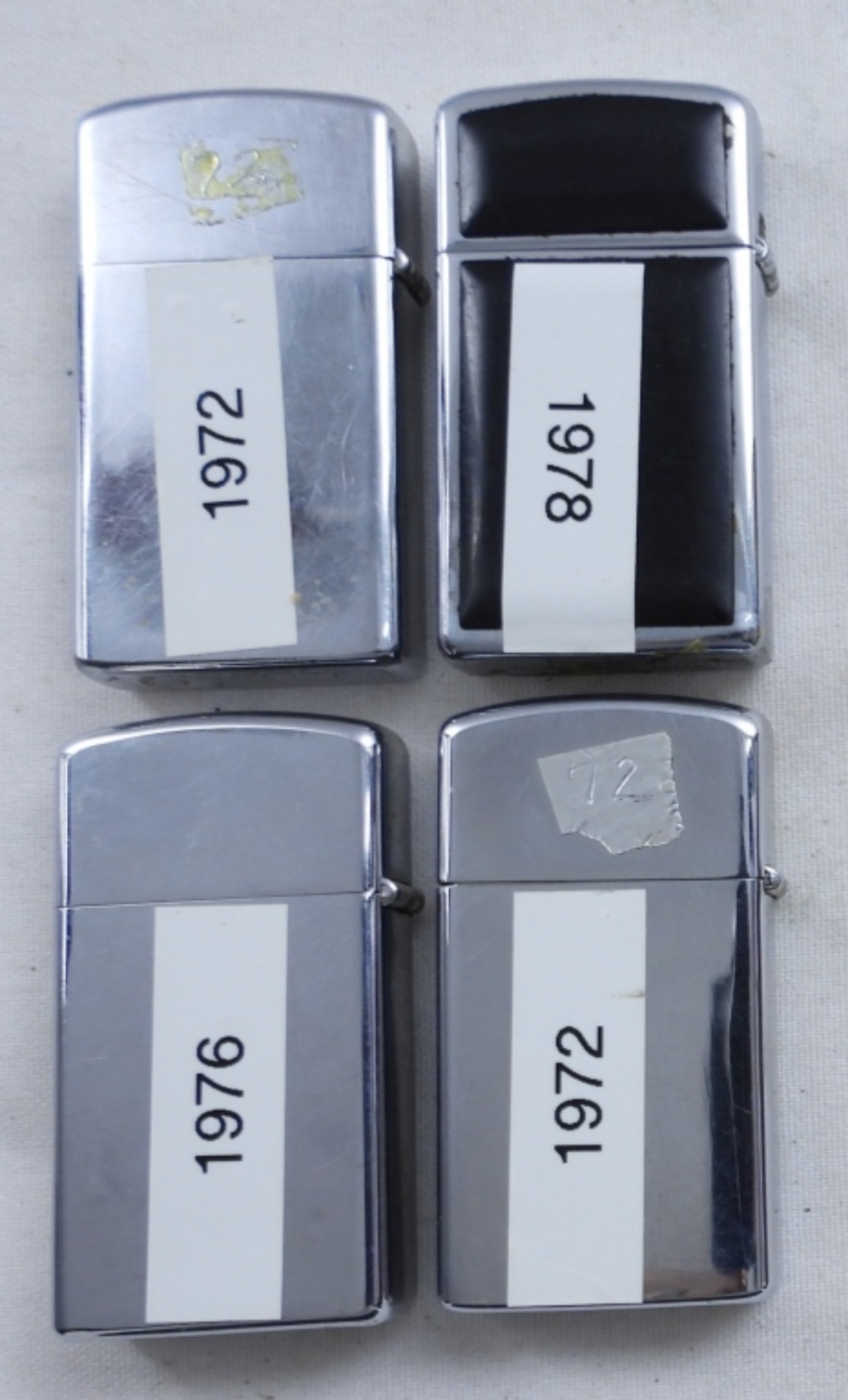 1972- GIFFORD HILL ZIPPO, FIRED. 1972-WOODARD TRUCKING COMPANY HOUSTON, TEXAS, SLIM ZIPPO, FIRED. 1976- DALLAS SLIM ZIPPO, FIRED. 1978- GIFFORD HILL, FIRED.