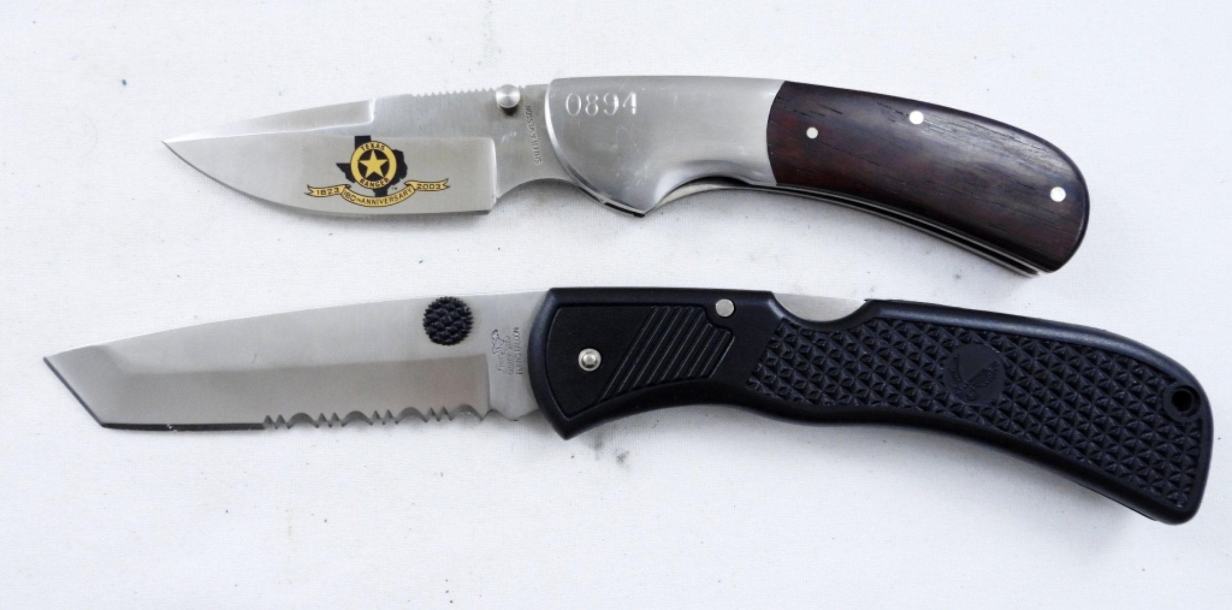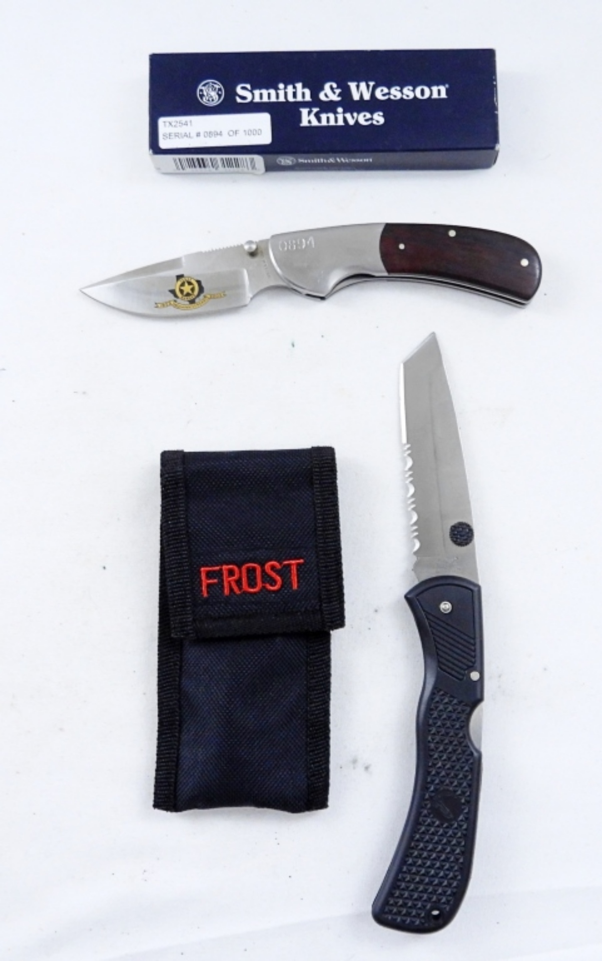 FROST FOLDING KNIFE WITH CLIP AND IN CARRIER, SMITH & WESSON 0894: TEXAS RANGERS WOOD FOLDING KNIFE