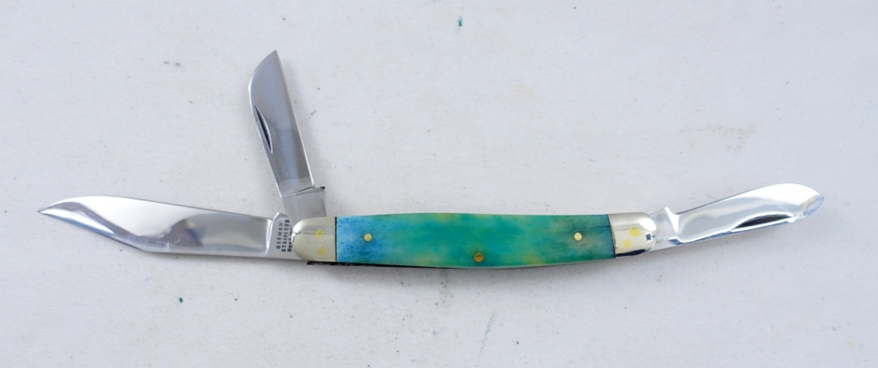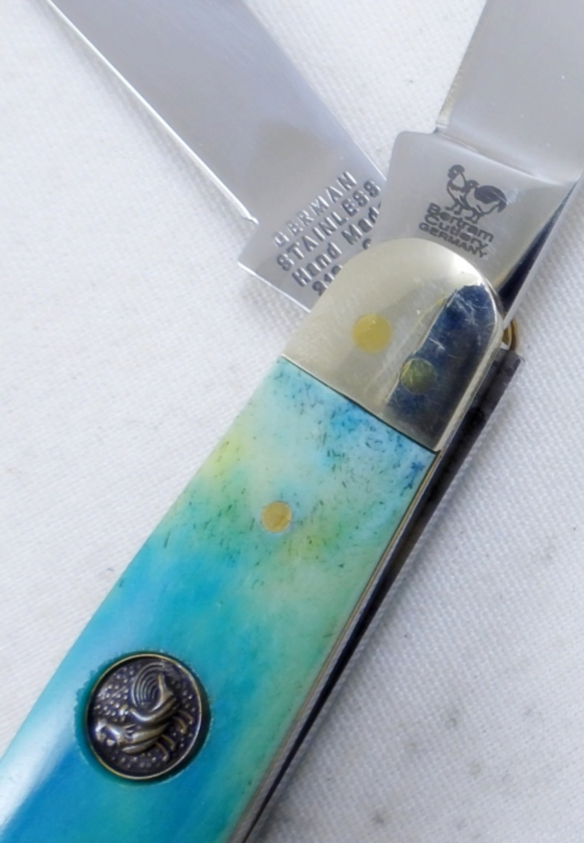 GREAT CONDITION IN ORIGINAL BOX, HEN & ROOSTER MADE IN SOLINGEN GERMANY 313-CB BEAUTIFUL SEA FOAM COLORING POCKET KNIFE