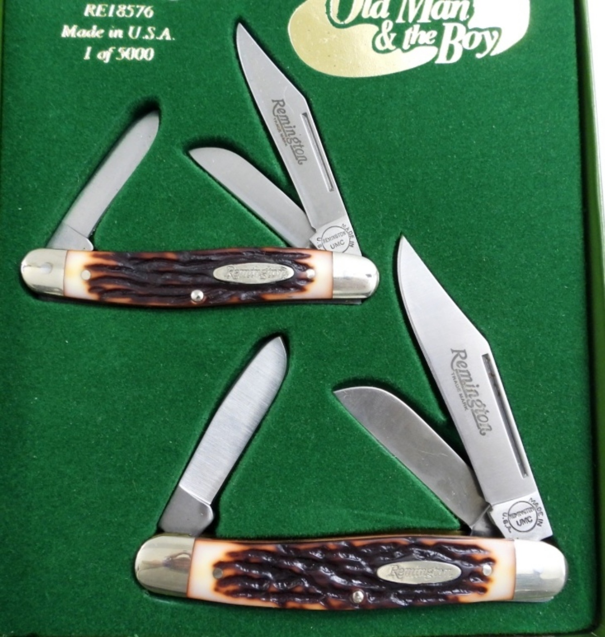 REMINGTON RE18576 1 OF 5000 THE OLD MAN & THE BOY 2 POCKET KNIFE SET IN ORIGINAL PACKAGING