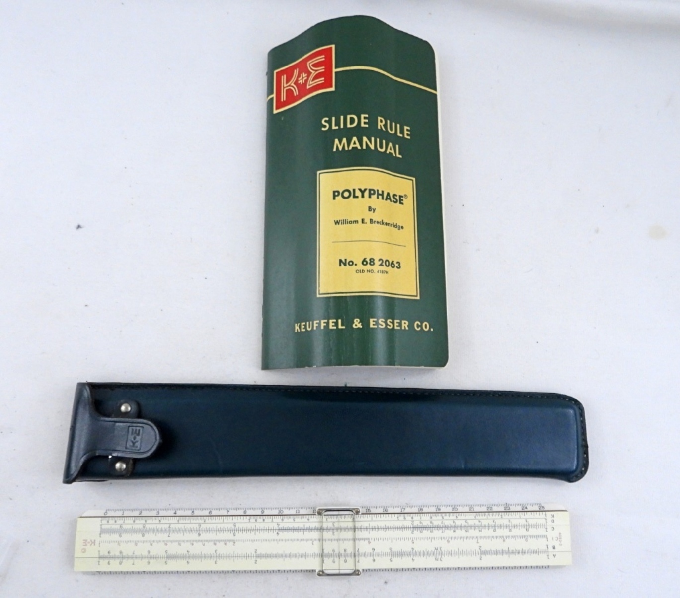 VINTAGE K&E 68 1622 POLYPHASE SLIDE RULER MADE IN USA, IN ORIGINAL PACKAGING WITH MANUAL