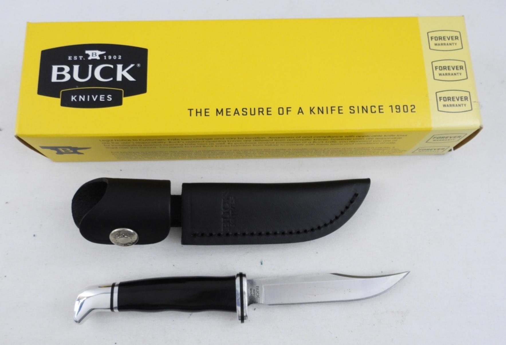GREAT CONDITION BUCK WOODSMAN 102 BLACK HANDLE IN BLACK SHEATH, IN ORIGINAL BOX, BID NOW!