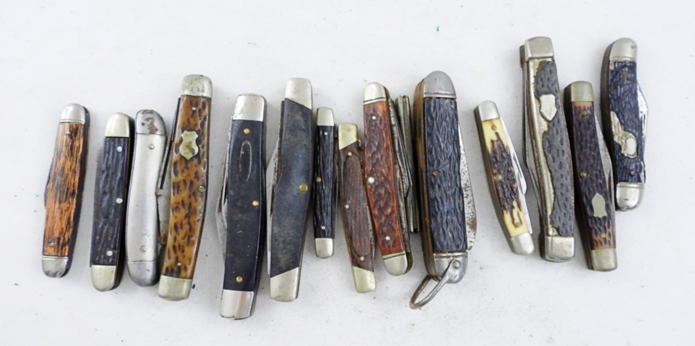 HAVE A MIX OF POCKET KNIVES- SOME ARE RUSTY, BROKEN KNIVES, MISSING PARTS. SOME OF THE BRANDS ARE- BUCK, UNCLE HENRYS, SABRE, IMPERIAL. REPAIR & PARTS LOT.