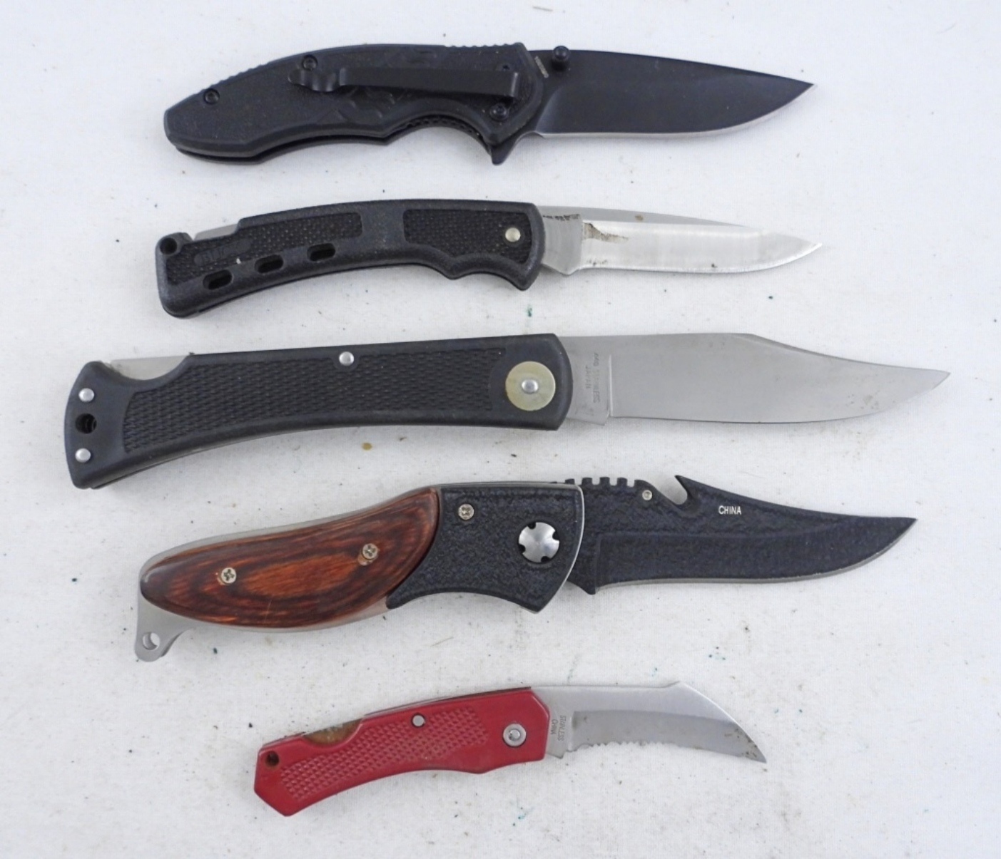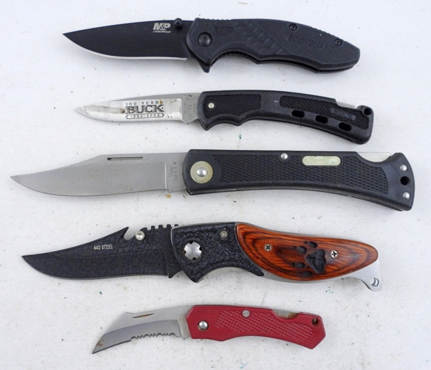 FURY SINGLE BLADE UTILITY KNIFE WITH BLACK HANDLE IN GOOD CONDITION, SMITH & WESSON BODYGUARD UTILITY KNOW WITH BLACK HANDLE, IN GOOD CONDITION. 100 YEARS BUCK KNIFE WITH BLACK HANDLES, IN GOOD CONDITION, STUNNING