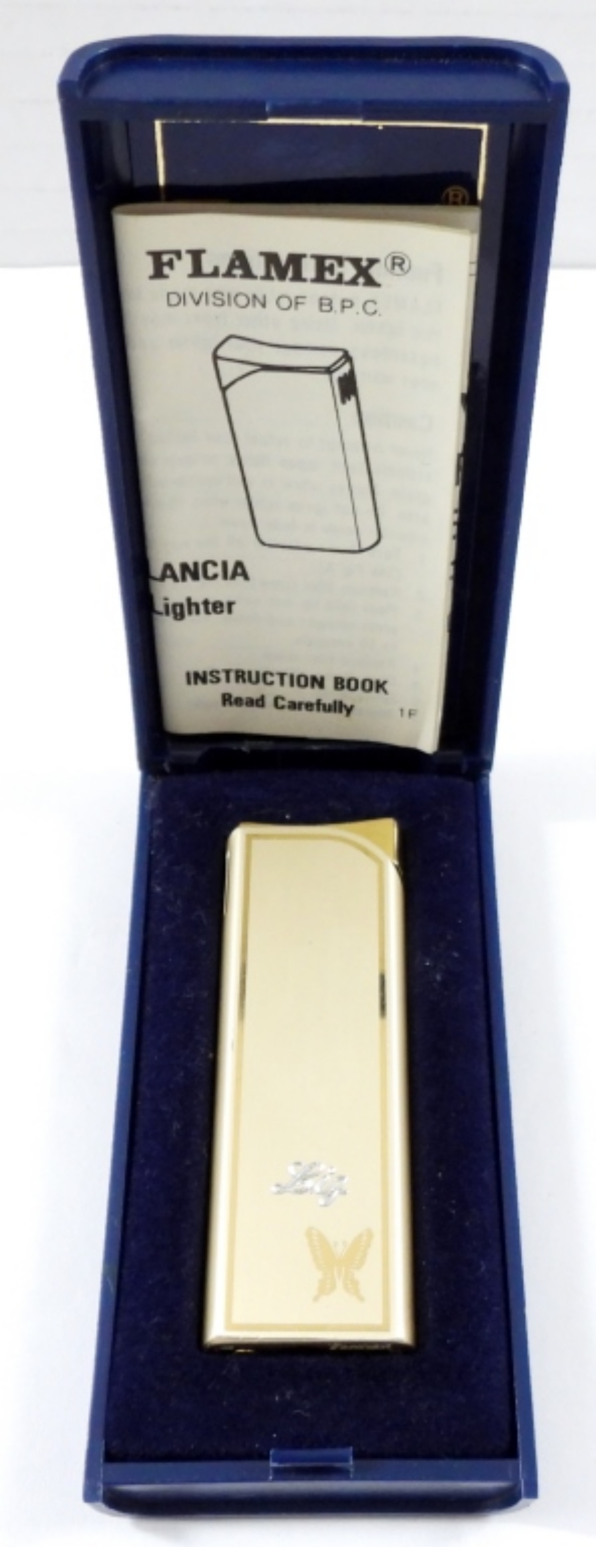 VTG FLAMEX PIEZO ELECTRIC LIGHTER , GOLD TONE IN AN ORIGINAL BLUE CASE WITH PAPERS