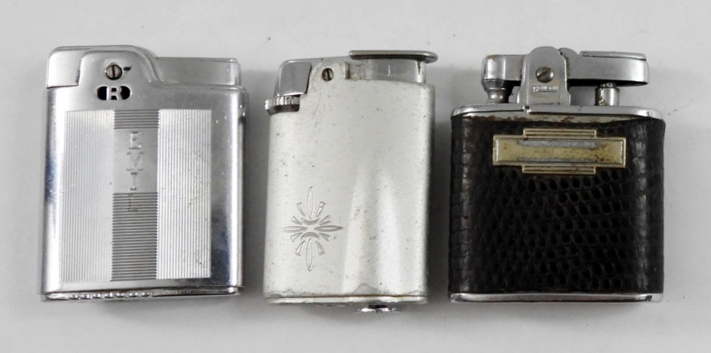 3 VINTAGE RONSON LIGHTERS. 1-RONSON ESSEX CHROME ART DECO (ENGRAVED). 1-RONSON VARAFLAME STARFIRE LIGHTER. 1-1930’s RONSON PRINCESS LIGHTER.