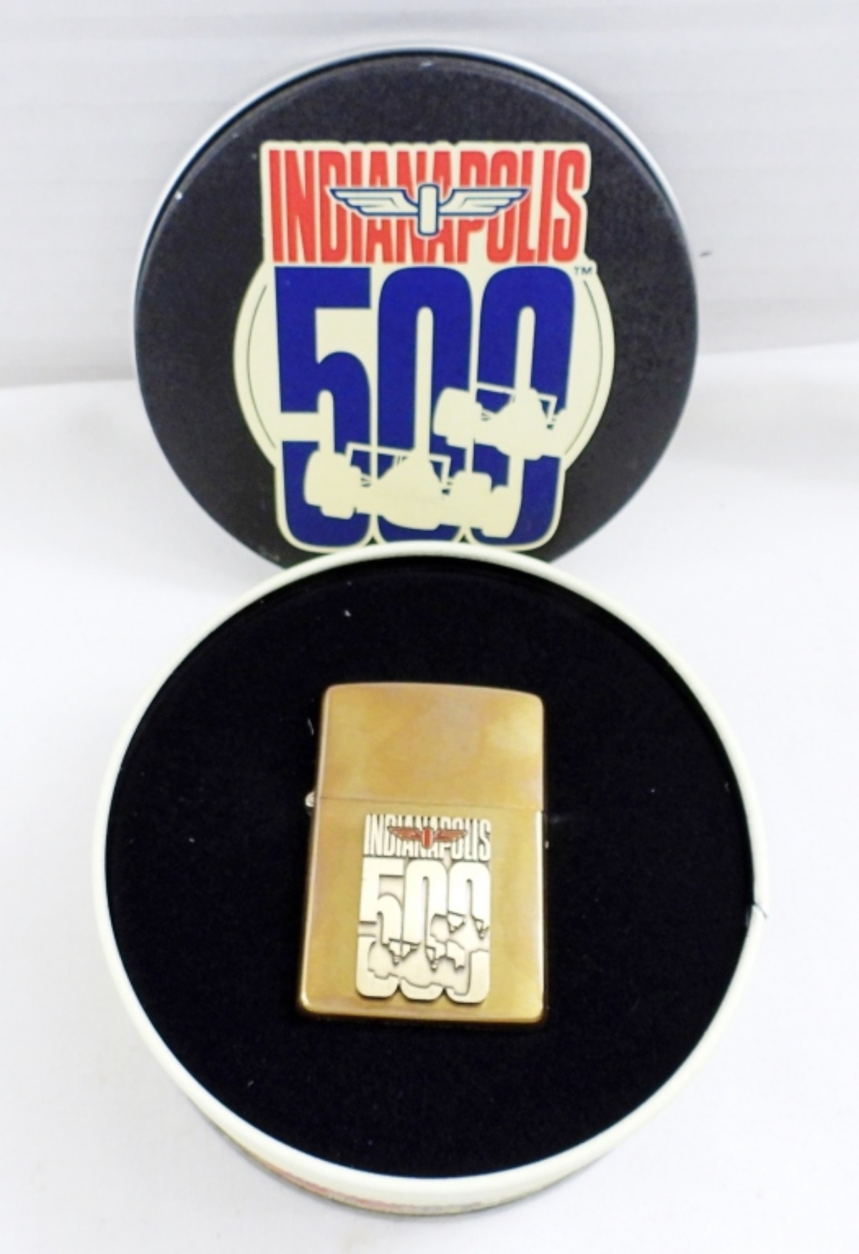 SEALED INDIANAPOLIS 500 LIGHTER, IN ORIGINAL ZIPPO TIN BOX, SOLID BRASS