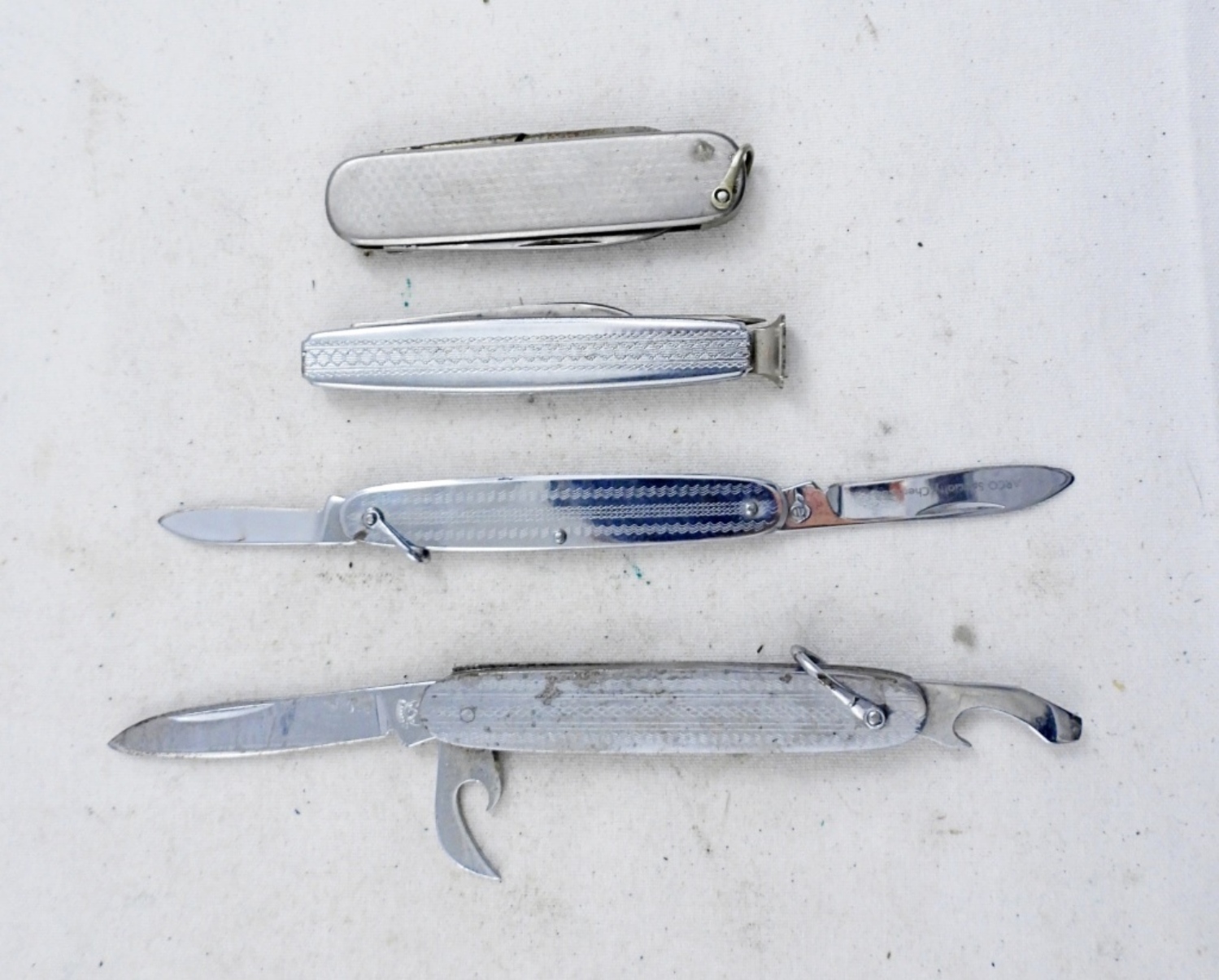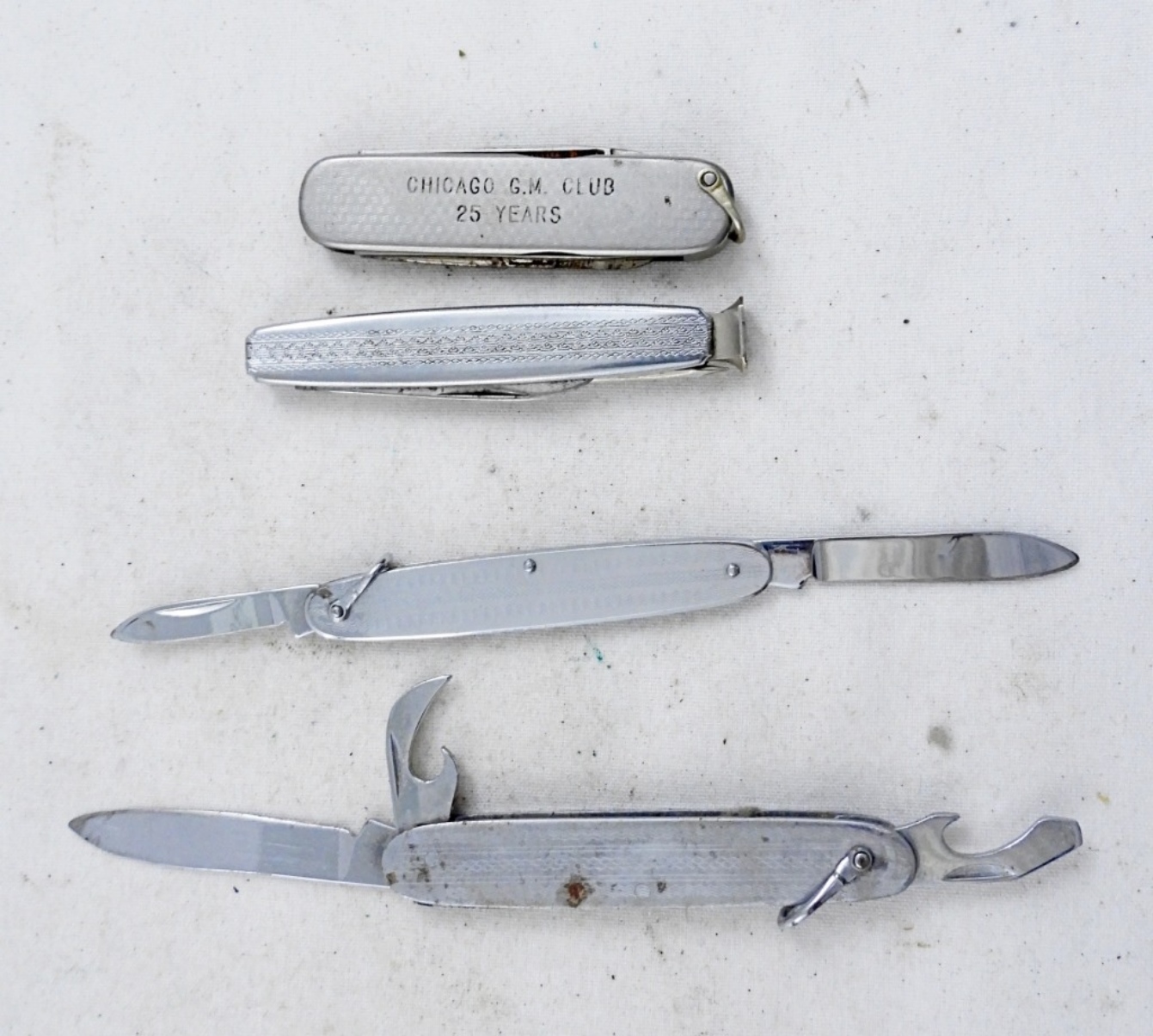 (1) PIPE REAMER, (3) USED ART DECO POCKET KNIVES