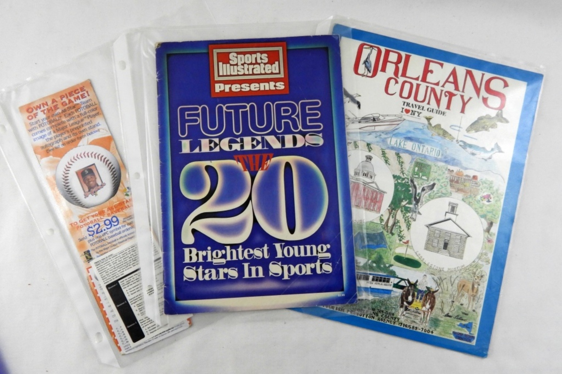 1990’S BASEBALL CARDS, APPROX 100 CARDS, THERE ARE A FEW FOOTBALL AND BASKETBALL CARDS MIXED IN. THERE ALSO IS A SPORTS ILLUSTRATED MAGAZINE & A TRAVEL GUIDE. ALL ARE PREOWNED, UNSEARCHED
