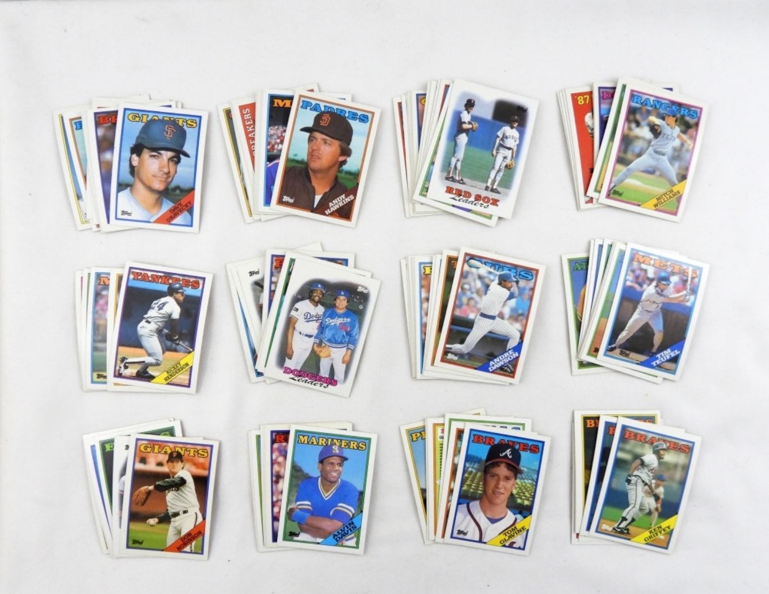 1988 SET OF BASEBALL CARDS, THIS SET DOES HAVE THE DIFFERENT TEAMS INCLUDED IN THE SET. APPROX- 700 CARDS, UNSEARCHED, UNCOUNTED, UNVERIFIED.