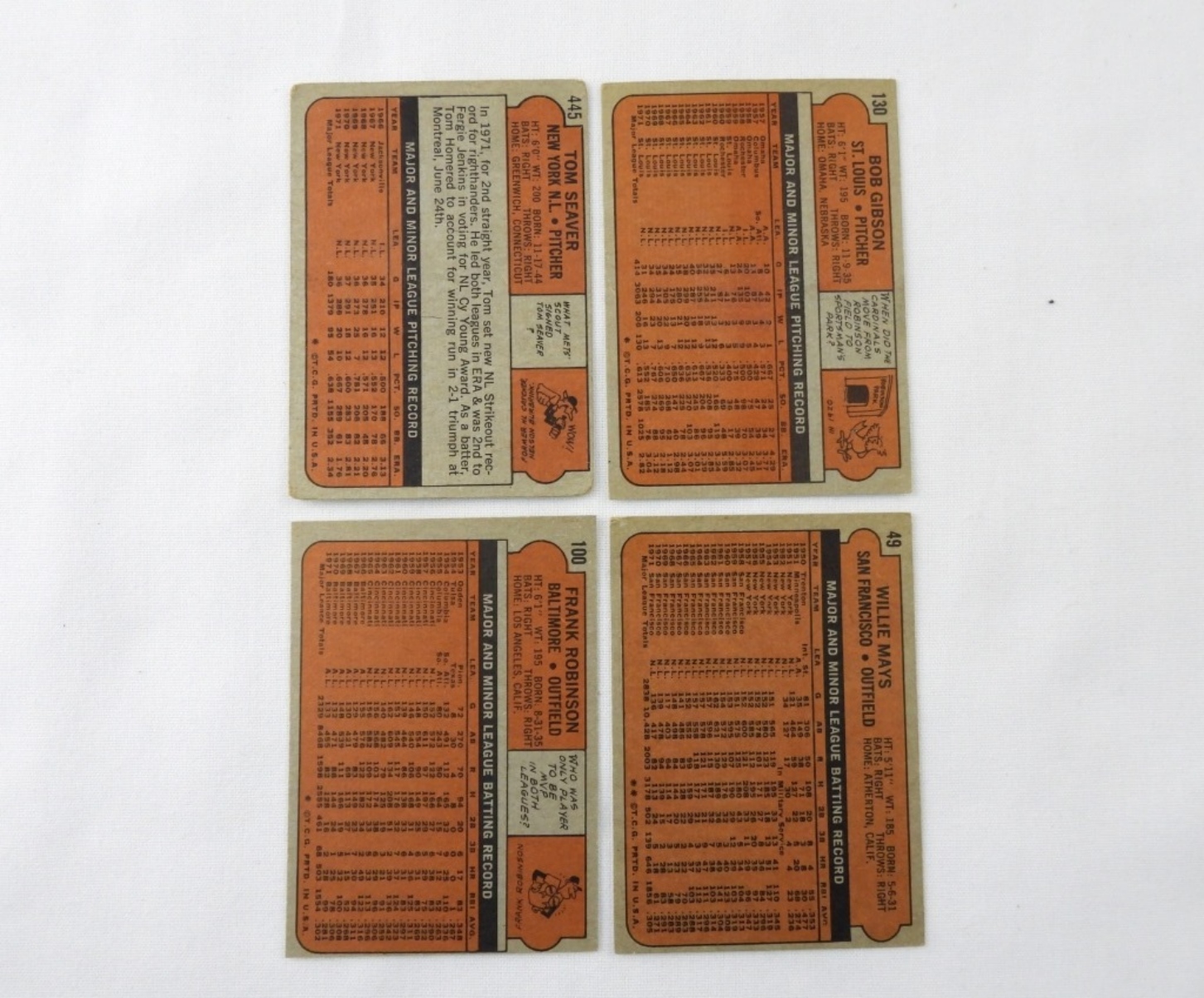 1972 TOPPS ASSORTED CARDS: BOB GGIBSON, TOME SEAVER, FRANK ROBINSON, WILLIE MAYS