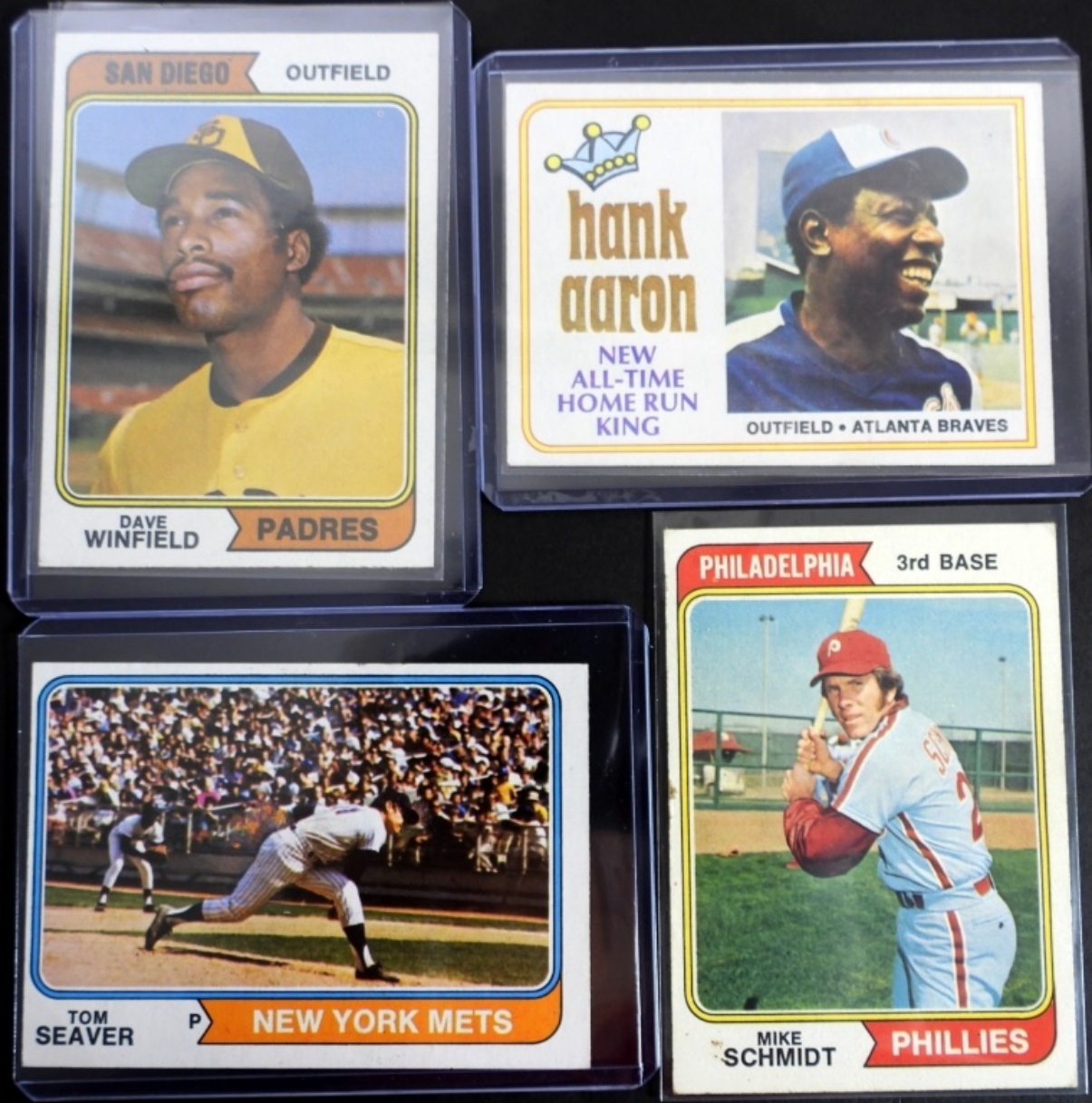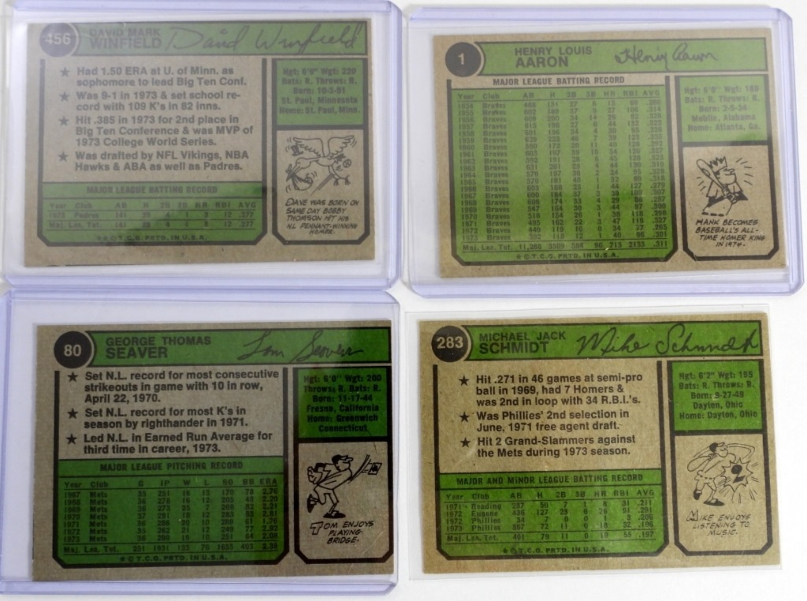#456 ROOKIE EX, #80 SEAVER EM/NM, #1 AARON EX/EM, #283 SCHMIDT VG